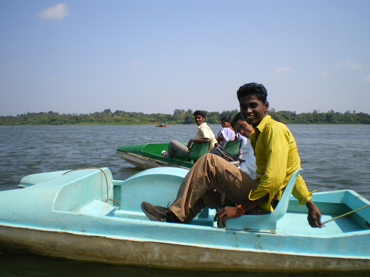Last saturday, we finished the first week by a trip around Pondichery with the students. It was the occasion to spend time together outside of the class. First we went to visit one student family. Then we had a quick lunch and went boating on a lake: first time for students so big experience for them and lot of fun! At the end, we visited some temples. So, nice day for everybody!