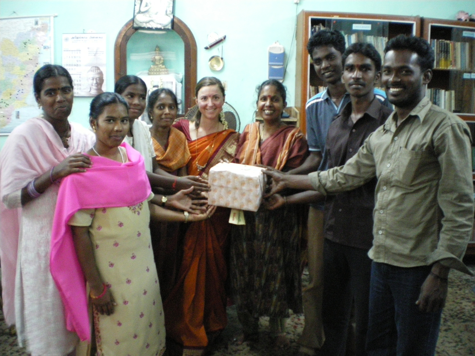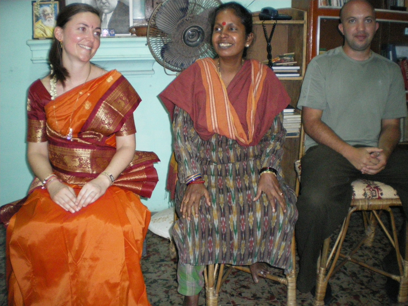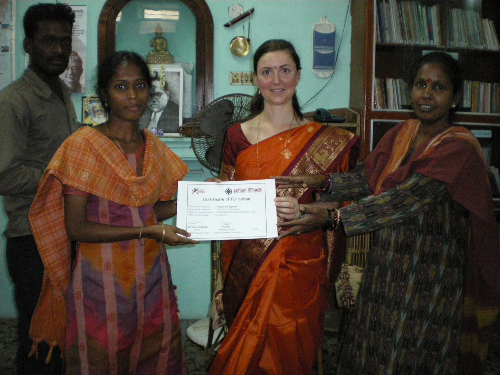 Yesterday afternoon, we had the celebration for diploma in advance because Lalida and Perumal left for an international conference in Australia (for 2 weeks). First, we began by trainees and trainer feedbacks and thanks. Then, we gave the certificate to the trainees. I received a very nice present as well! At the end, we shared a french desert we made the day before (chocolate mousse) and some brioche with Nutella, delicious! This day was also the occasion for me to wear sari…I felt like wedding dressed! Anyway it was very nice!