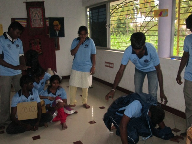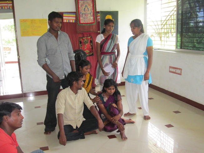 The theatre workshop organized for youth at Kootukkural Office from 20th of November to 24th of November 2013. The main aims of this workshop are youth learning to perform in theatre, to understand about the domestic violence issues, and to make those issues popularized in the villages. Training were given for Theatre, song, Kombu dance, Kumi , paraiattam for a Hard core campaign. And preaching based on Domestic Violence from 25th till 10th December 2013.