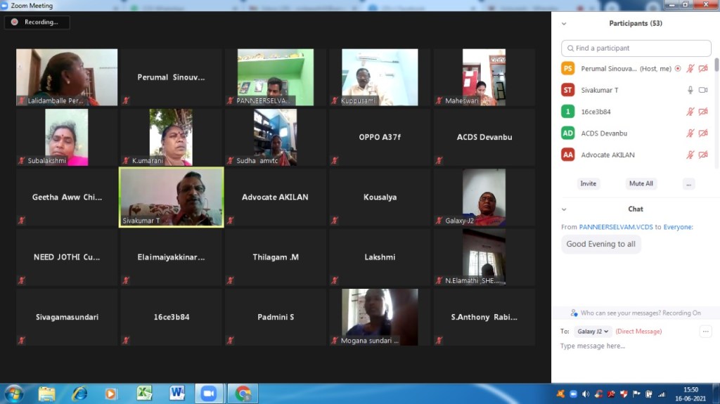 Maitri Network and ADECOM NETWORK coordinately organised the Consultative meeting with Multi-Departmental officials on hoe to reduce sexual harassment against women and girl child. It was held on 16.06.2021 through online at 3.30 to 5.30 pm.