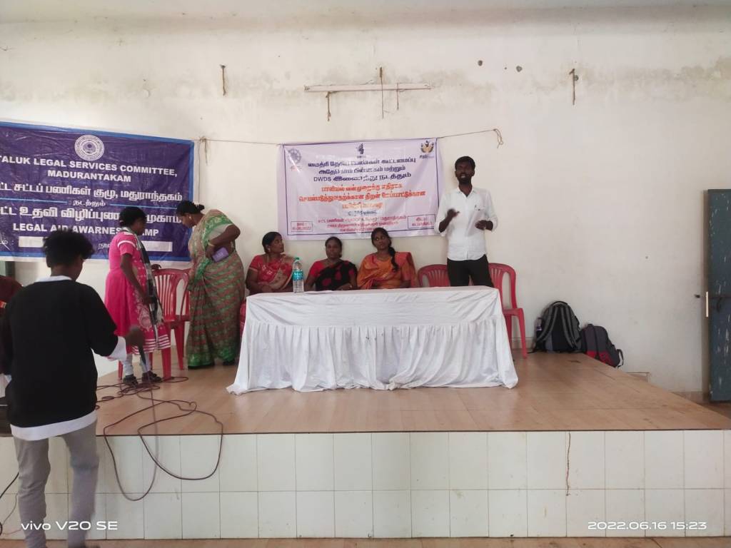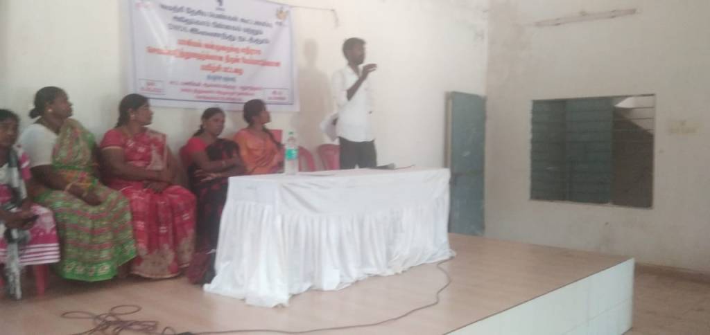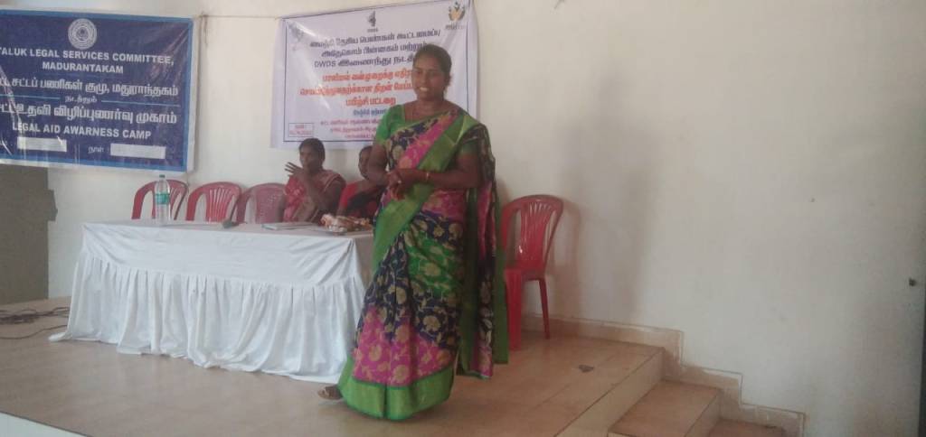 On #16.06.2022, Capacity building training was organized for CBOs with the support of DLSA, Maitri, DWDS, and ADECOM Network at Community Hall, Kadapakkam Village in Chengalpet district. The Workshop was conducted exclusively for Community based organizations in Cheyyur Taluk such as Anganwadi Teachers, Women group leaders, Local NGOs, Local Panchayath, and Social activist. There are 58 members who participated in the above-mentioned category. Of these, 7 men and 51 women. All the participants were given their full cooperation and actively participated till the workshop ends.