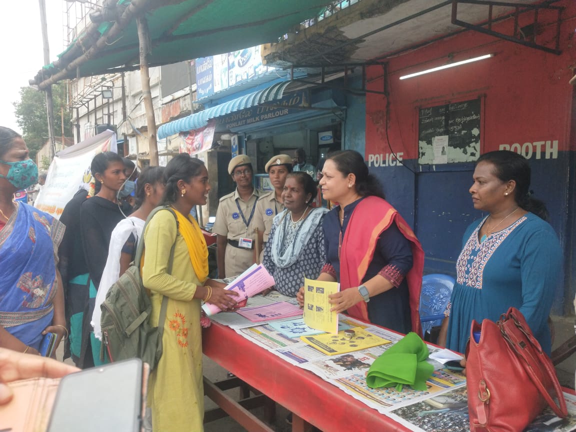 #22.06.2022அன்று காலை 10 மணி அளவில் #மைத்திரி தேசிய பெண்கள் கூட்டமைப்பு அதேகோம் பின்னகம் மற்றும் மனிதநேய மறுவாழ்வு குழுமம் ஒருங்கிணைந்து பெண்களுக்கெதிரான வன்முறைகளை தடுத்தல் குறைத்தல் தீர்வு காணுதல் என்ற நோக்கத்தில் #சமூக விழிப்புணர்வு துண்டுபிரசுரம் வழங்குதல் நிகழ்ச்சி புதிய பேருந்து நிலையத்தில் புறநகர் காவல் நிலையத்தில் நடைபெற்றது. நிகழ்ச்சியில் #திருமிகு லலிதாம்பாள் நிர்வாக அறங்காவலர் தலைமை வகித்தார் #திருமிகு வித்தியா ராம்குமார் வரதட்சணை தடுப்பு அதிகாரி கொடியசைத்து நிகழ்ச்சியை தொடங்கி வைத்தார். இந்நிகழ்ச்சியில் காவல்துறை ஆட்டோ ஓட்டுனர்கள் மற்றும் பொதுமக்கள் அனைவருக்கும் துண்டு பிரசுரங்கள் வழங்கப்பட்டன இந்நிகழ்ச்சி மனிதநேய மறுவாழ்வு மையத்தின் இயக்குனர் திருமிகு ரோஸ்லின் சீலா ஏற்பாடு செய்தார்.