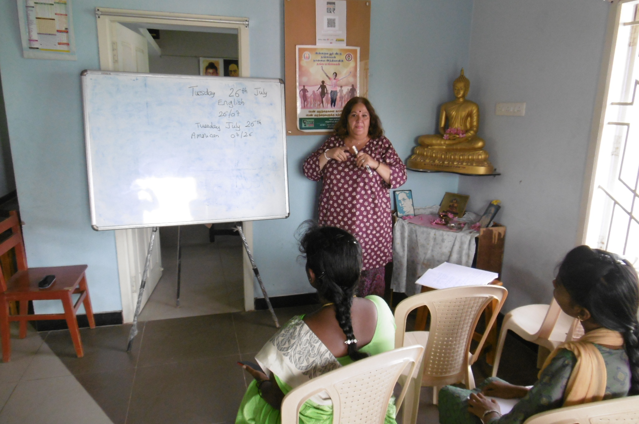 France a donne des cours de langue; Patrick son mari l`a assistee dans diverses taches.