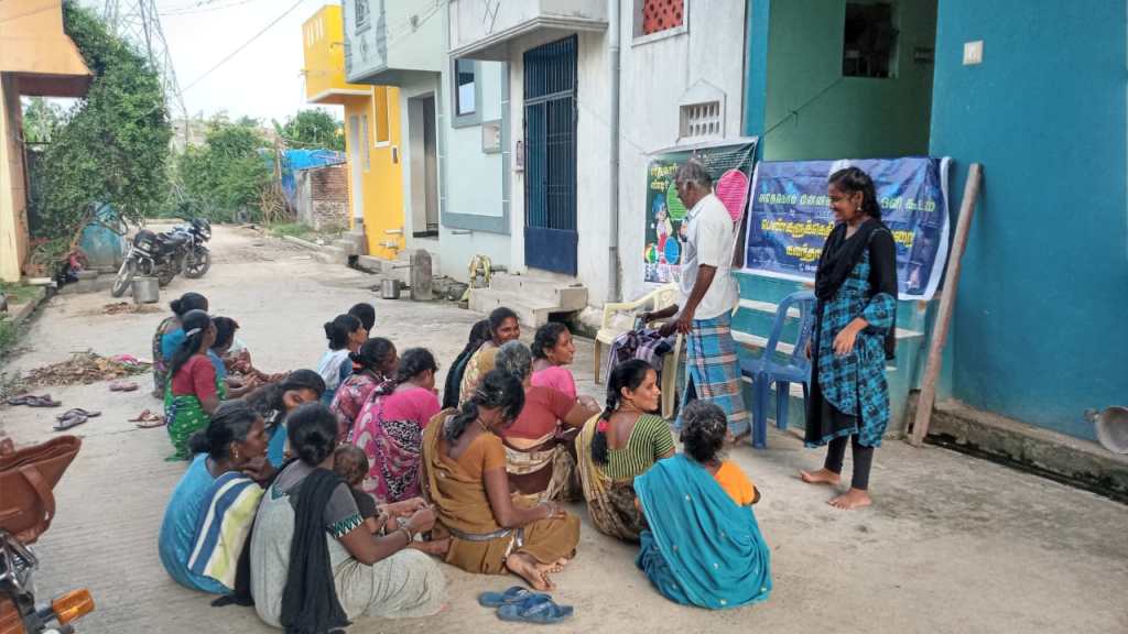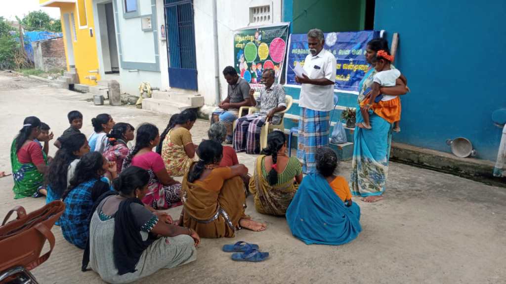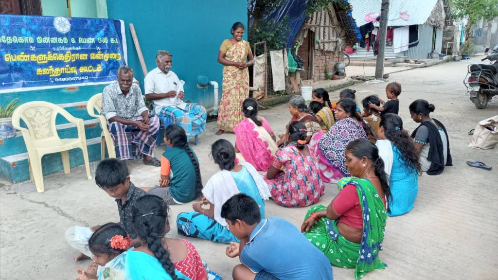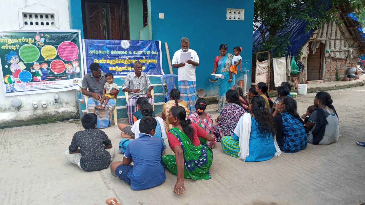 #On. 23.07.2022 Adecom Network & Pen Oli Kudam with the support of Vatara Varlarchi Pengal Kottamaippu organized meeting in Gopalan Kadai, Puducherry for CBO’s Violence against women. In the meeting Jansi Rani, women Leader , Mm.Badmavathi, family Counselor & Mr. Verrappan village leader were participated. Totally 20 person were participated.