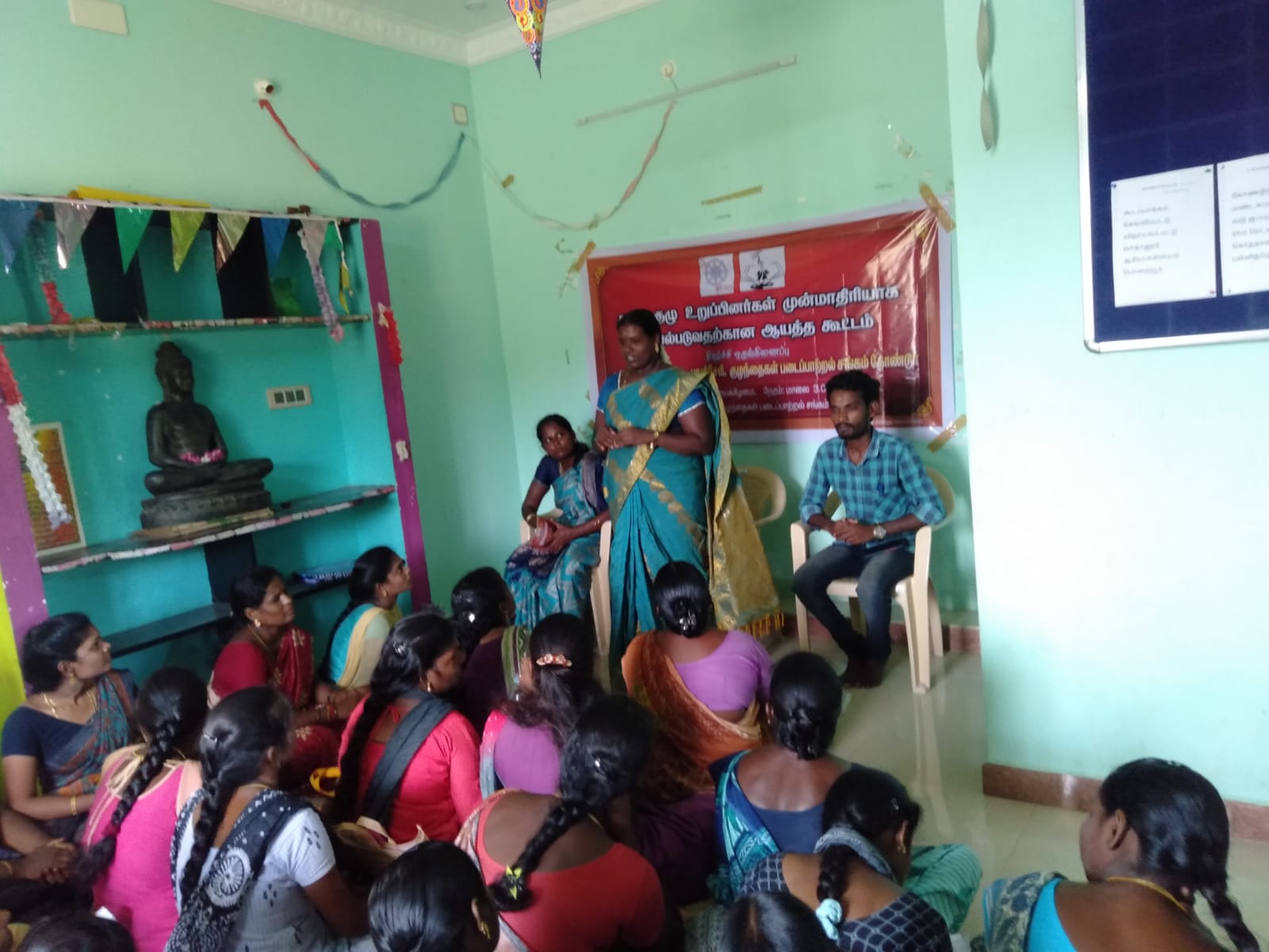 #On 29.08.2022 ADECOM Network & CRC Kondur organized awareness meeting in Kondur regarding Violence against Women. In which, Mm.Vennila CBO’s Leader, Mm.Sudha, coordinator Adecom, Mm.Nadiya Panchyat Leader,Mr.Manikandan Leader, ullachi Karangal Amaipu & mm.Ponniyammal field Staff were participated. They discussed importance Participation of Village CBO’s issues regarding Violence Against women or villages issues. Importance of Group formation. Mm. Nadiya briefed the importance women participation in panchyats. Mr. Manikandan, stressed about women self help group participation in loan issue but it should concentrate other issue of women. 36 participants enthusiastically participated in meeting.