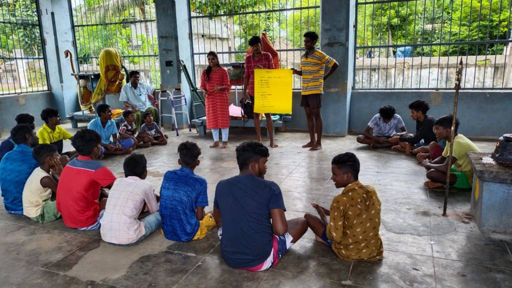 On 04.09.2022, a Project fellow Adecom Network has taken sessions 3 & 4 (Work Distribution on Gender / Work Load Time Mapping) to the 18 group members from the Pakkam village in Villupuram district. They were divided into two groups. And given the topic to write in their chart paper by discussing with team members. Then, two representatives were selected from each group to present their writings. After that, the fellow raised the questions from their presentation and concluded the session with a brief explanation.