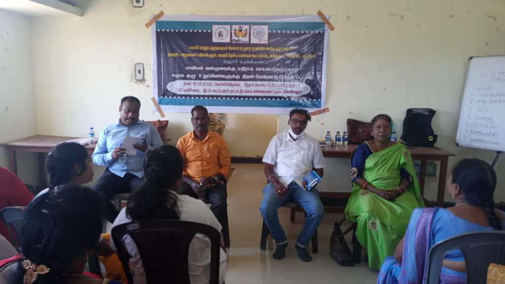 Sep 16. Puducherry. On behalf of Department of Women and Child Development ,Integrated Child Welfare Program Office Villianur, Maitri National Federation of Women, ADECOM Network and Pen oli Kudam, organized CBO’s Capacity Building training on Violence Against Women at Villianur Puducherry.
