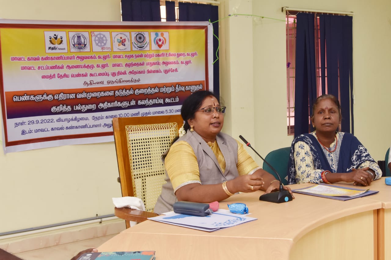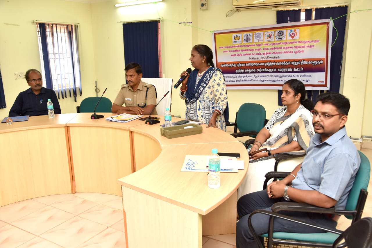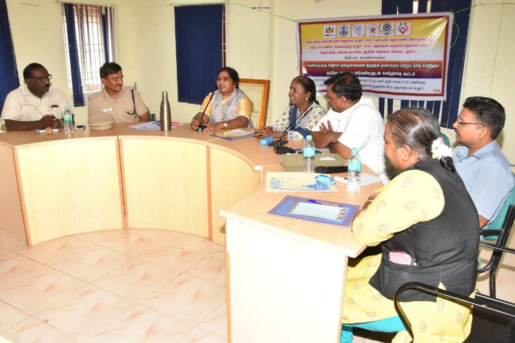 Inspector and Assistant Inspectors of Cuddalore District Police Station and All Women Police Station, Advocate Mr. Seenu.Perumal Advocate Prabhavathi Assistant Police Inspector Henry Rajan, Public Prosecutor Selva Priya, Security Officer Andal, Child Welfare Committee Chairperson Lakshmi Veeraragavan, Psychological Consultant Deva Raja Health Supervisor Katiravan, District Coordinator Tuimai Bharat Movement Velumani, ICDS Coordinator Sundari, Kita Coordinator Child Line Mukundan , Directors of Voluntary Organisations, Arogya Mary, Jyoti and Kannagi, Chidambaram provided the services, the Center’s Consultant Volunteers Satish Kumar Vignesh participated in the discussion and recorded their views.