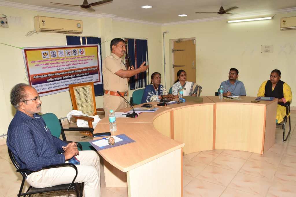 Cuddalore, September 30– A multi-disciplinary consultation meeting on prevention, reduction and resolution of violence against women was organized by District Superintendent of Police Office, Social Welfare and Women’s Rights Department, District Legal Affairs Committee, District Child Protection Office, Maitri National Federation of Women New Delhi and ADECOM Network, Cuddalore District Police Held at Superintendent’s Office. In this meeting, District Additional Superintendent of Police Mr. Srinivasalu (Cyber Crime Branch) headed by Cuddalore District Pocso Special Court Judge Ezhilarasi will be the special invitee and will talk about crimes against women and girls, prevention of child marriage, sexual assault, reporting pornographic images on cell phones, prevention of crimes against girl children, dealing with crimes, how to deal with legal amendments, registration. she also explained how to dispose of cases expeditiously and mainly how to deal with the affected persons. Further, she said that only if all the departments for women and children work together, justice can be delivered to the victims soon. Also, one of our duties is to take the next step in the lives of affected individuals. We must provide them with the necessary training and skill development facilities. Finding and working with voluntary organizations like this same group can show the victim a better way. Because only studies can take them to the next level. He also said that since they are mentally challenged, they can take the help of voluntary organizations to monitor them regularly and give them advice at the right time.