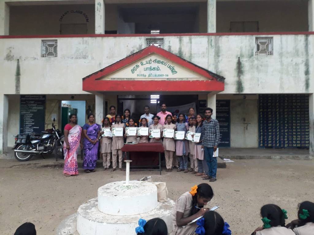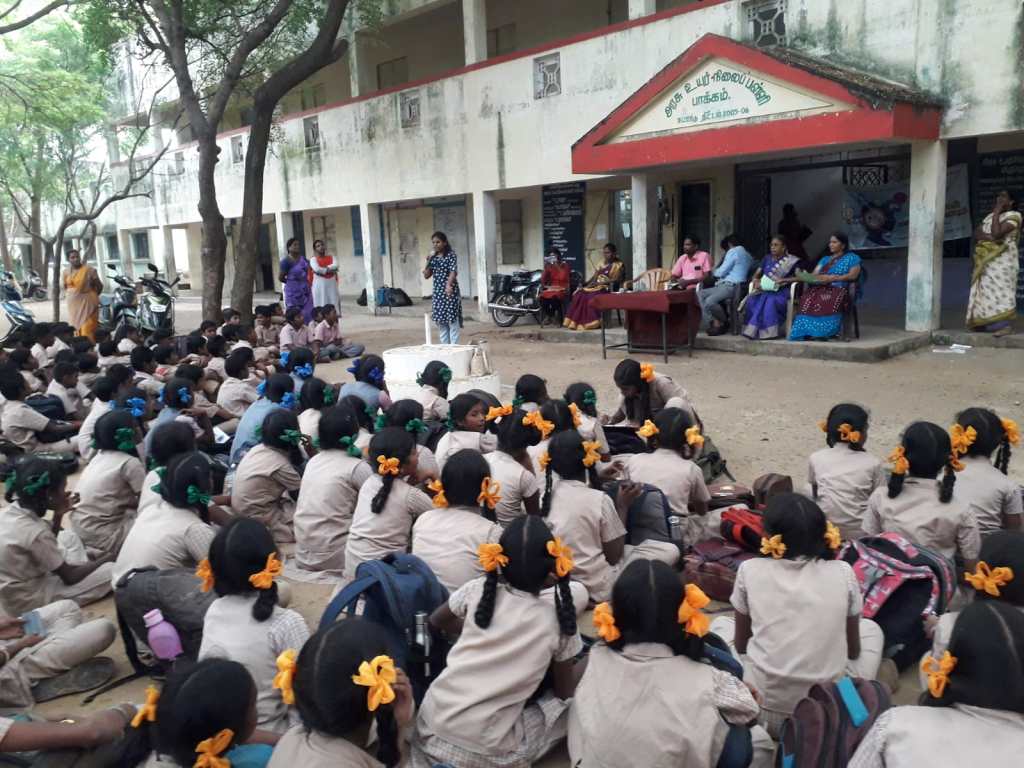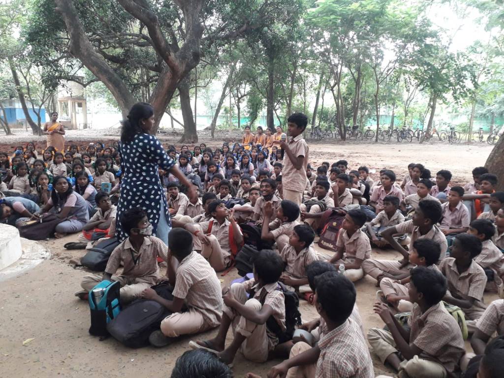 On 18-11-22, ADECOM Network & CRS organizes Children Safety week program in Pakkam High School, Villupuram District.Mrs. Vanilla Community Group Chairperson welcomed them all. In the Introduction Speech, Mrs. Suda explained that ADECOM Network has been working for the protection and development of women and children for the past 29 years. Don’t Leave the place If a person is behaving in a threatening manner towards you, you should raise your voice immediately and leave the place. Information can be given on the number If child marriage takes place. He explained the effects of child marriage on women. While speaking Ms. Jaishree asked the girls what they liked and disliked. Then asked the boys what they liked and disliked . Then asked the children where in your village do you feel you are not safe and the boys said it would be scary if they went to the cremation ground and the girls didn’t say anything. Explain about the POSCO Act & rights of children. While speaking, the Headmaster congratulated the children and thanked the same ADECOM Network. In his speech, Mr. Manikandan introduced the children who participated in the village art program in the area and emphasized that you too should grow in some skill like them and gave certificates to the children who participated in the art program. Mrs. Ponniammal thanked them all