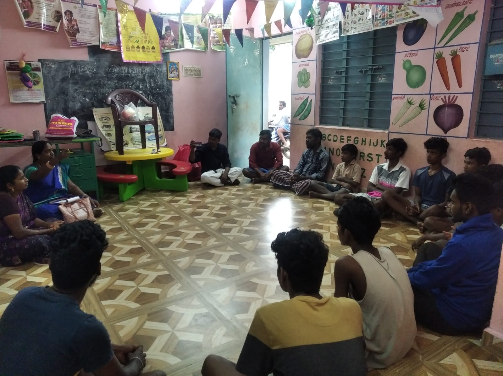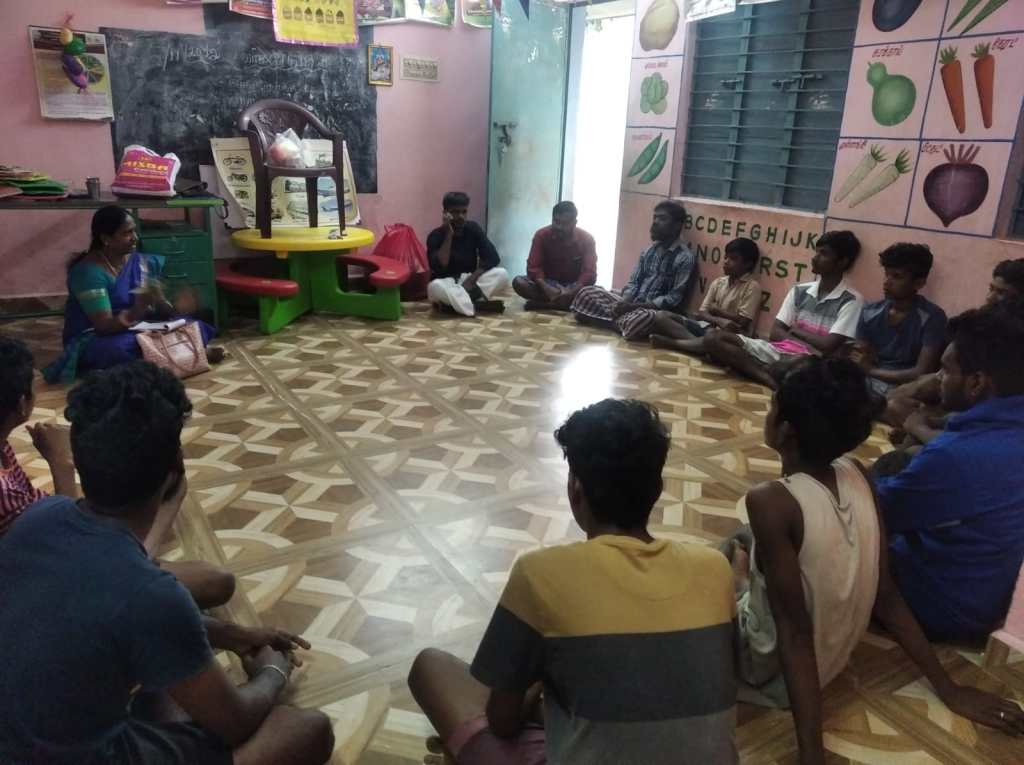 On 20.11.22, Our Fellow organized Masculinity training for Men & Boys in Janakipuram, Chegalpatu District. The coordinator reminded the previous exercise and then the coordinator took the exercise on controlling the movement of girls and women. He asked the youths who participated in the first exercise to stand in a circle and then one by one he asked me to say one two. Before I start this game I will tell you one condition every time I said that you should play this game accordingly They put small circles inside the big circle. The youths understood and started the game In the first round those who can be said to be women should run with both hands raised Participants in the small circle with clapping hands. There stood some people who didn’t get the small circle so they came out of the game then destroyed a circle . The coordinator told the participants to run on one leg and clapped after a few laps then one person came out of the game then the game started. The female participants were told to run with one leg and one arm raised while playing continued the coordinator clapped and stopped the game then the youth stood in a small circle then some people left the game.