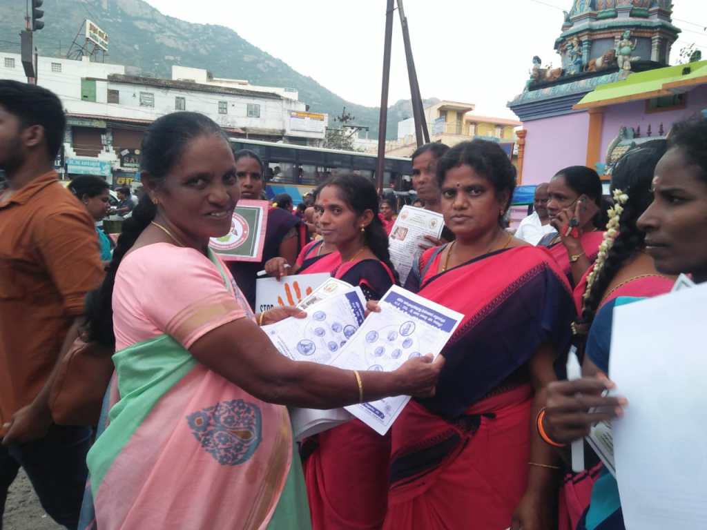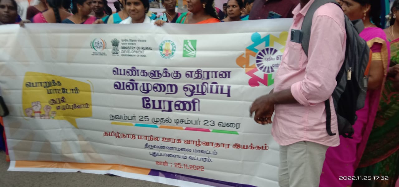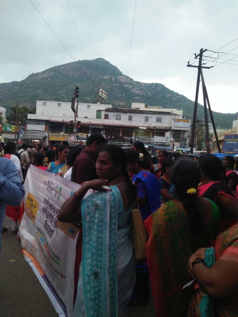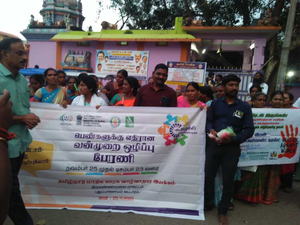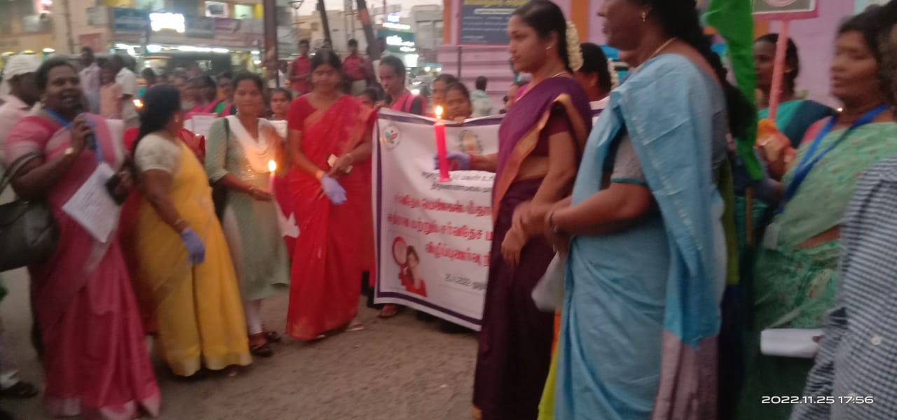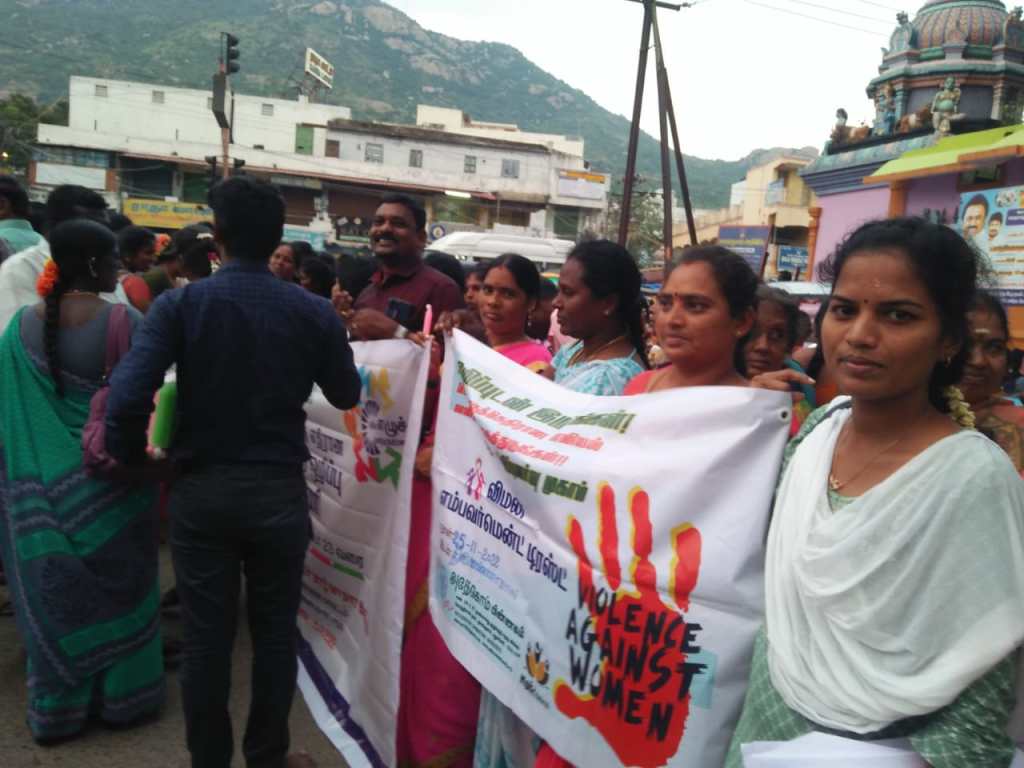 The Department of Social Media organised the 16days campaign activism in coordinating with ADECOM and our parents’ empowerment trust.A rally was held 3 km from Thiruvannamalai bus stand to Kamarajar statute TV malai. District Revenue Officer Ms. Priyadarshini inaugurated the rally by lighting a candle. There are 500 people from Social Welfare, OSC, Anganwadi Teachers, Voluntary Organizations participated in this rally. Also awareness was created by distributing pamphlets to the general public.