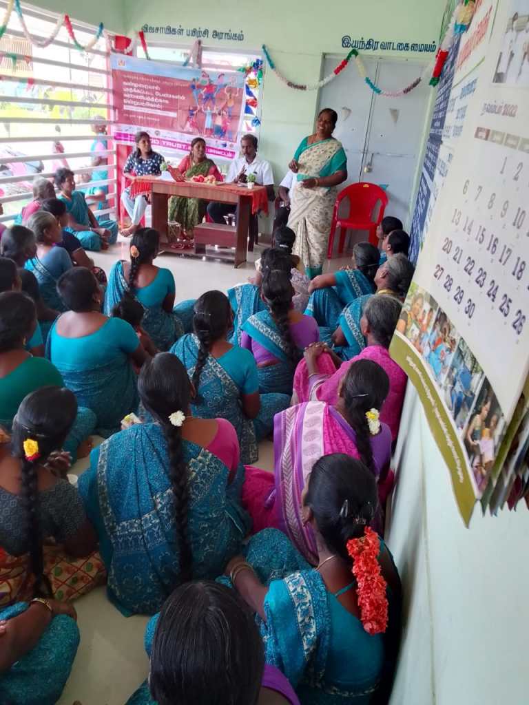 DAY – 3, On 27.11.2022, In cuddaore district, our CBO SVED organised the 16days campaign activism with the 50 Self help women group coordinating with Pasumai Thondu Niruvanam, at Thirumanikoozhi village,Cuddalore. They were given awareness on Sexual and domestic violence against women, free legal aid, activities and services of osc, helpline number 1098,181. They formed a rally and took a pledge on VAW.