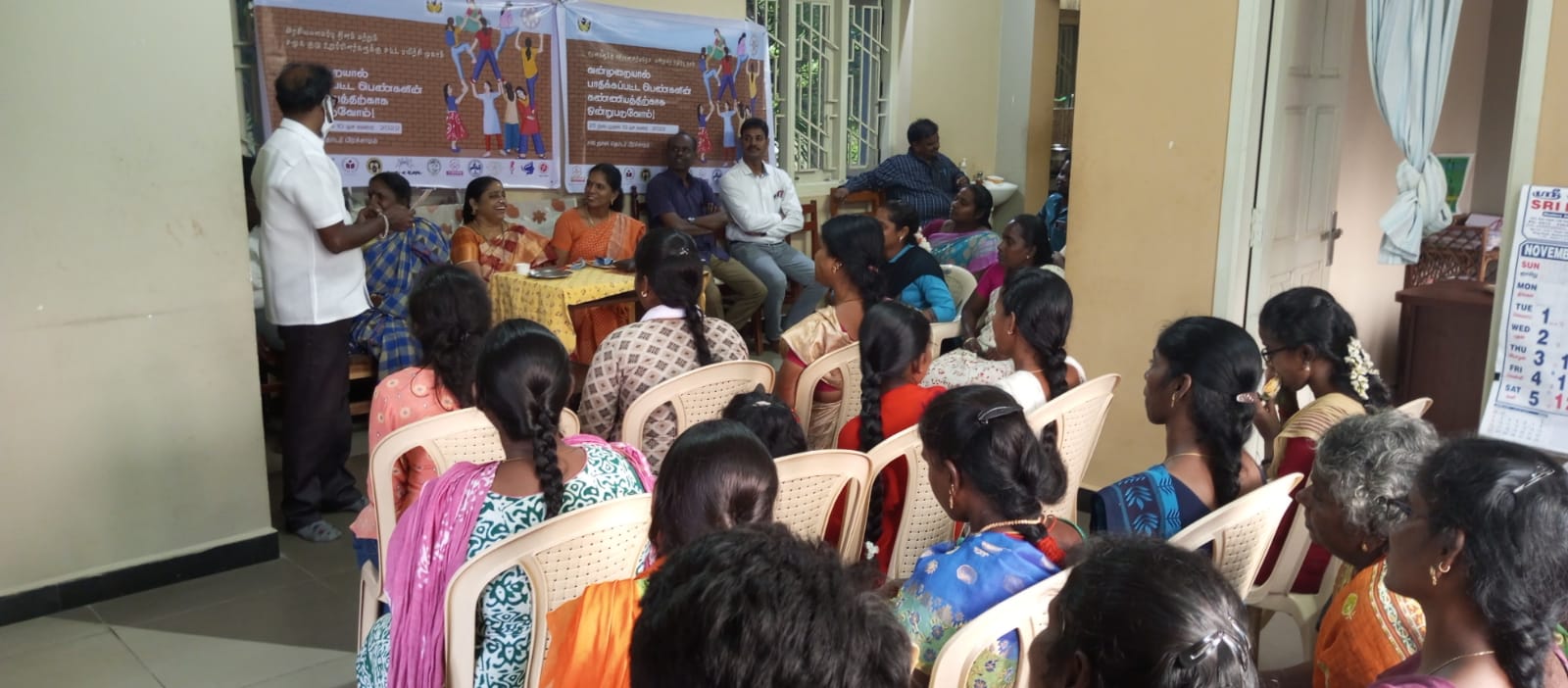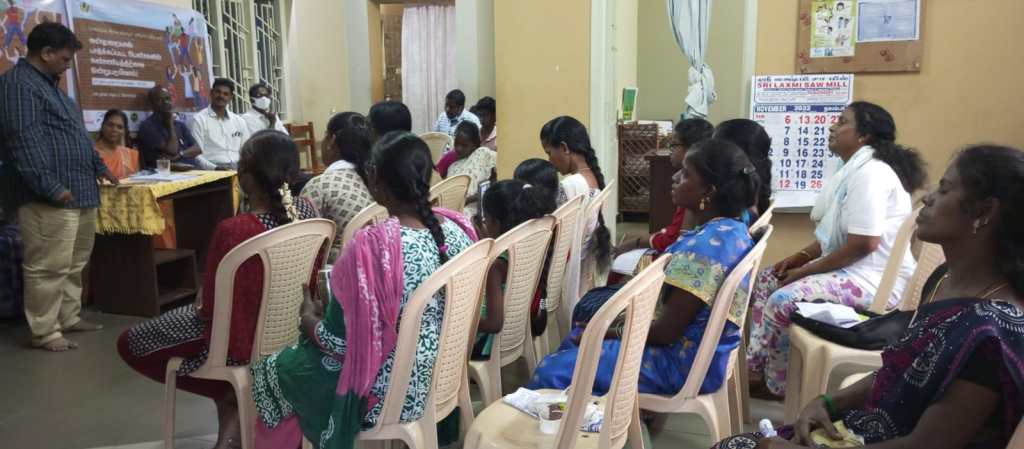 # 16 days Campaign- DAY – 2, 26.11.2022, National Constitution Law Day was remembered in our office with coordination of Maitri Network and State Rural Livelihood Empowerment (DRDA). Mr. Tamilmani, a social activist participated in this event and explained about the history of Dr. Ambedkar’s as the person who drafted the Constitution of India. He also narrated about what are the problems Dr. Ambedkar faces to submit the Constitution law and the laws he wrote for women. State Rural Livelihood Empowerment (DRDA), Gender Coordinator Ms. Savithiri, says that the women should come forward to report their violence against them. Because a lot of supporting mechanisms were initiated and now it was available for the women survivors. ADECOM is the one of the best support organizations for the women survivors in our state. The women will come forward to report their violence to this organization to get their justice. Senior Advocates and DLSA Panel Advocates Mr. Ilanjezhiyan, Mr. Purachikumar, Mr. Sinu. Perumal and Mr. Sivakumar also participated. Law officer from Public Works Department Ms. Lakshmi was also part of this event. More than 40 people such as lawyers, social activists, survivors of sexual and domestic violence honored and took pledge on “Unite the dignity for women”.