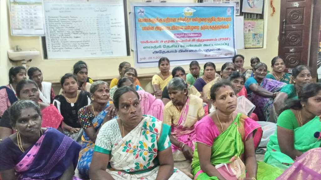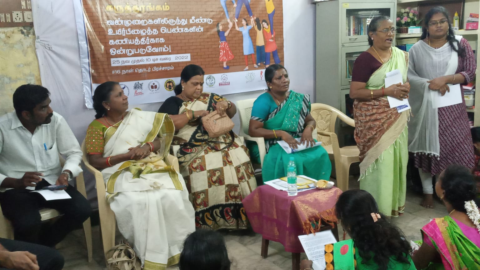# 16 days Campaign- DAY – 4, A series of 16 days campaign was organized in Pondicherry on 28.11.2022. Our CBO Mr. Mohanasundharan, PSDF has coordinated this campaign activity with the support of Maitri and ADECOM Network.