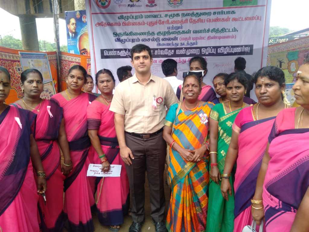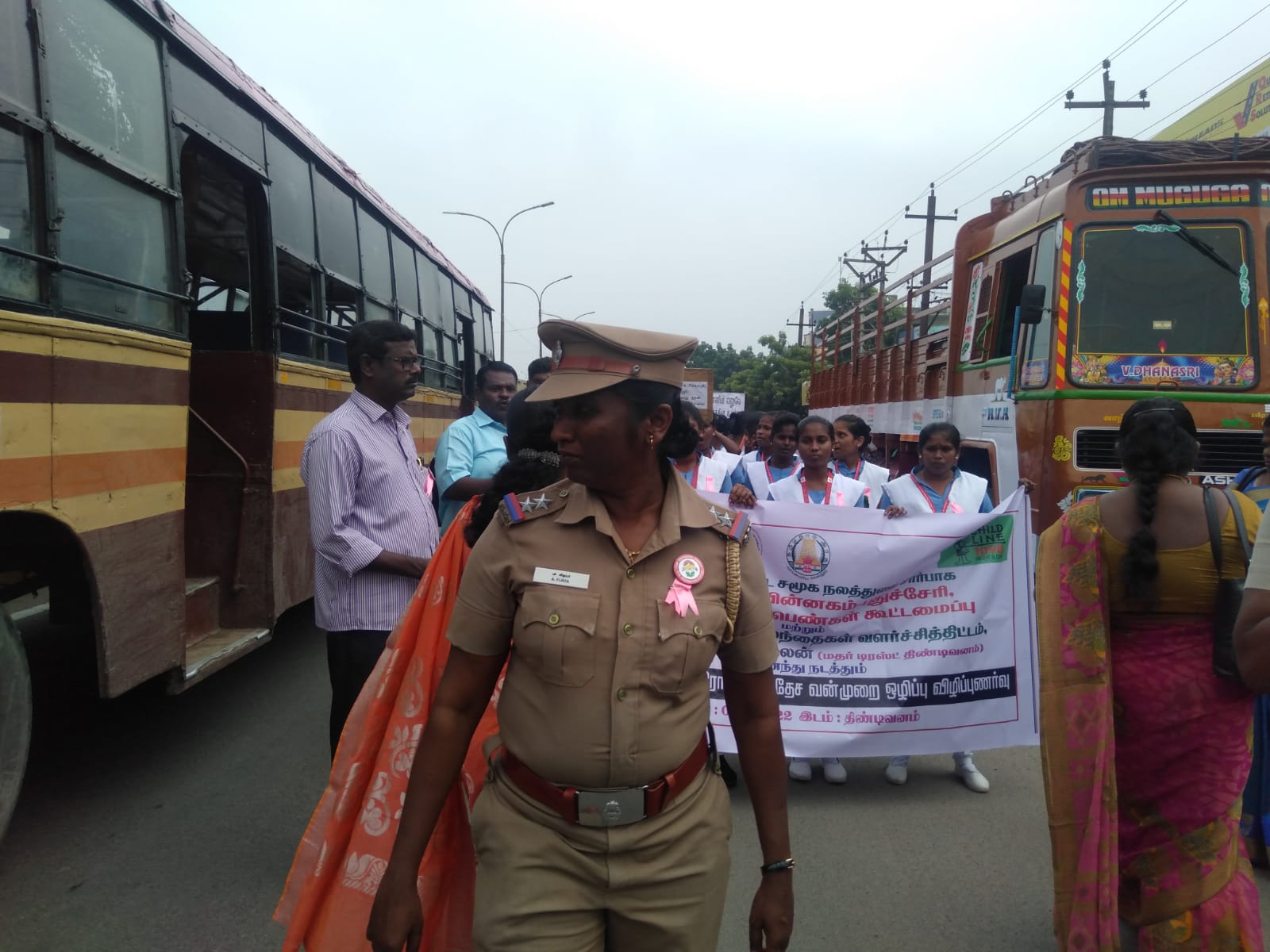 # 16 days Campaign- DAY – 7, On 01.12.2022, Our CBO Mr. Lakshmipathi Mother Trust organized the campaign in coordination with the department of social welfare with the support of Maitri and ADECOM Network. On that day, 200 female students and 50 Anganwadi teachers took out an awareness rally against child marriage, violence against women and children from Tindivanam flyover to Appolla Institute. On that day, 200 female students and 50 Anganwadi teachers took out an awareness rally against Safety of Girl Child, Child Marriage, Child Labor, Girl Child Education from Tindivanam flyover to Appolla Institute.
