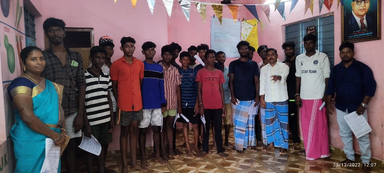 On 25.12.2022, In Janikipuram village, Chengalpet district, our fellow took the session on Facilitation of Education and Education as a Right. Before starting the session, fellow asked the participants to share what they had learned in the preceding session, how they had implemented it, and the challenges and problems encountered in doing so. There are 28 group members participated the training.