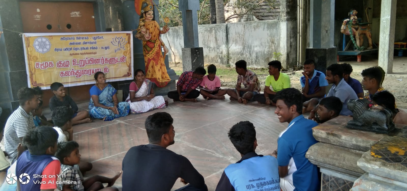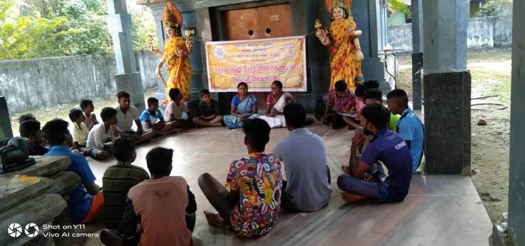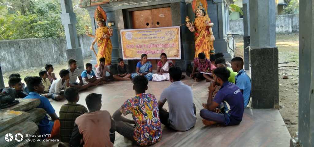On 28.1.2023 ADECOM Network, AMVWTC organized meeting for violence Against women for the men in Nattapatu Village in Cuddalore District. Mr. Vignesh, People’s Republic Movement President welcomed all the participants. Mrs. Maheshwari, in her speech introduced and explained the work of Adekom Pinnagam , Annai Meenampal Village Women’s Development Trust Office. Then explained about the registration of Group in the government through the Nehru Yuva kendra office and explained the benefits.