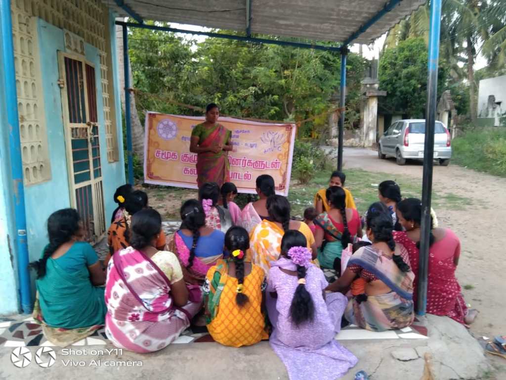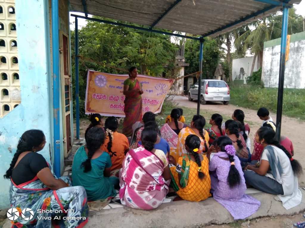 On 15.02.23, AMWVTC & ADECOM Network organized discussion with CBO’s regarding Gender Equality & Violence Against women in Nanamedu, Cuddalore District. In the discussion Mrs.Sugnathi, Pengal pagutharivu Parliament Iyakkam leaders given welcome speech. Later, Mrs.Maheswari, AMWVTC , co Ordinator , explain about our works , importance of counseling of survivor who affected by the violence against women. And also role played by the Nehru Yuva Kendra. Mrs.Pushpativi shared about the meeting she participated in last few years. In the discussion totally 22 person were participated.