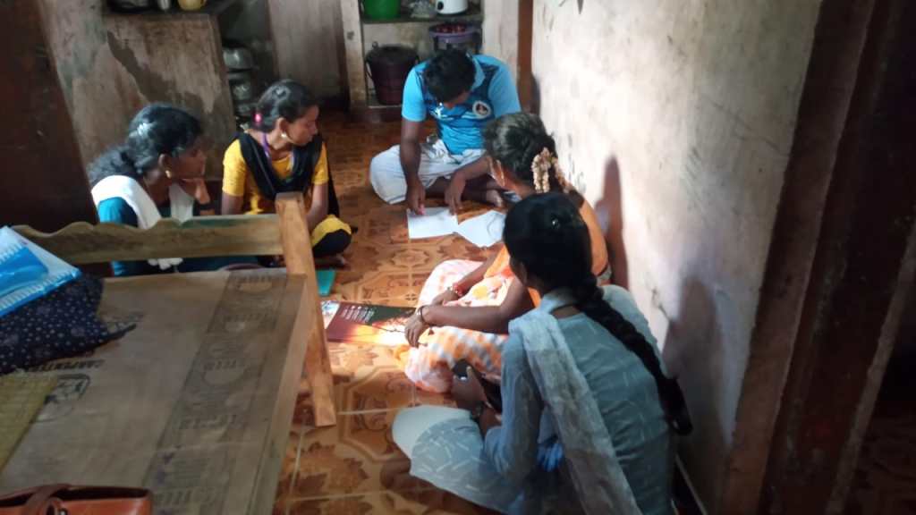 20.02.2023, AMWVTC , KNK staffs with Intern Students from Annamalai & Alagapa University interact with the CBO’s. The intern students learned about filed visit and interact with CBO’s to study regarding violence against women, Gender Equality & village needs.