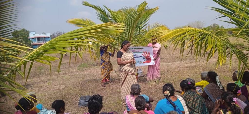 On 25-02-2023, In Thiruvannamalai district, our CBO PARAI Trust conducted the community fair programme at Thenpallipattu village entitled with prevention of sexual violence against women. The awareness was attended by 52 Women. During the meeting, they explained about GBV, DV, sexual violence, child marraige, OSC, child line, CWC, helpline number 181 and 1098.