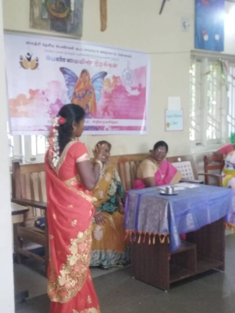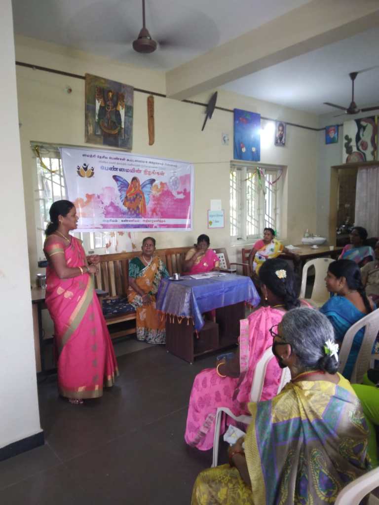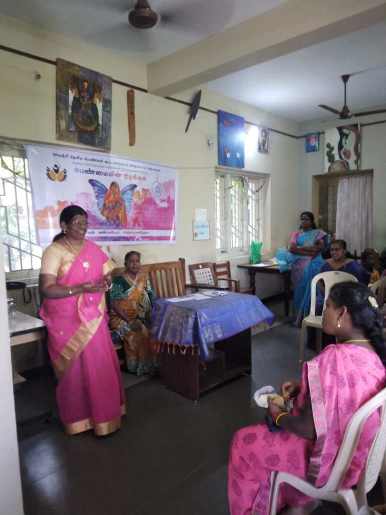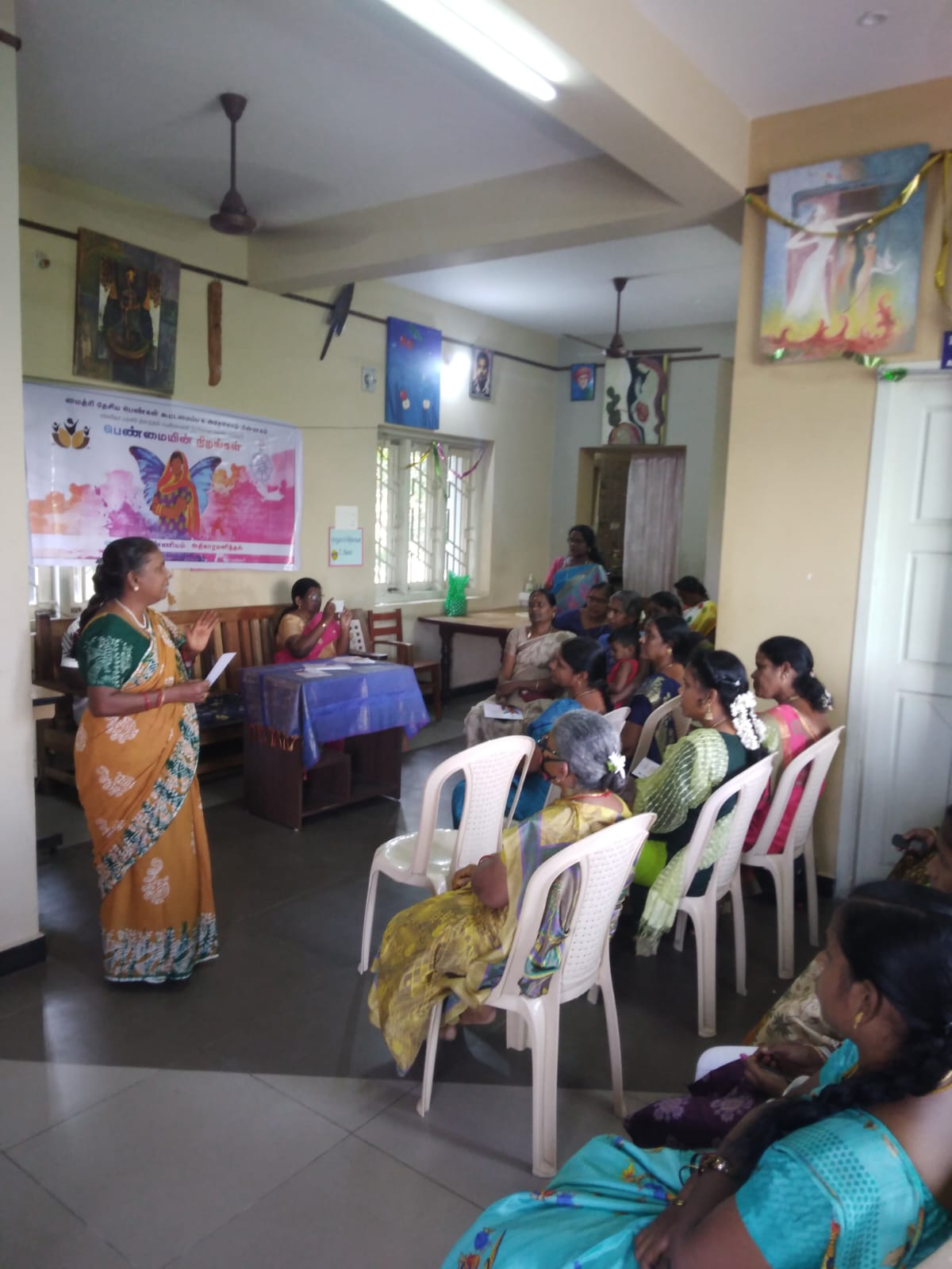 வழக்குறிஞர் திரு . சீனு ,.பெருமாள் பேசுகையில் , பெண்கள் தங்களின் உரிமைக்காக சங்கங்களாக உருவாகவேண்டும். அப்போதுதான் உங்களுடைய பிரச்சனைகளை சரி செய்ய முடியும். மேலும், இன்று நம் தேவைகளை இன்டர்நெட் வழியாக பூர்த்தி செய்யும்போது சரியான முறையில் செய்யவேண்டும். எந்த சேவையை நாம் அங்கு சென்று நிறைவேற்றுவது, அதனால் ஏற்படும் தீமைகளை குழந்தைகளுக்கு எடுத்துக்கூறவேண்டும். ஆண் குழந்தைகளுக்கு பாலின சமத்துவத்தை வளர்க்கவேண்டும் என அவர் கேட்டுக்கொண்டார், சர்வதேச தங்கப் பதக்கம் வென்ற பெண்களுக்கான எளிய தற்காப்பு நிறுவனர் திரு .மோகன், பேசுகையில், தற்காப்பு கலை பெண்களுக்கு நல்ல பாதுகாப்பை வழங்குகிறது. தற்காப்பு கலை வழியாக பெண்கள் தங்களை உடல் ரீதியாக மனோரீதியாகவும் பாதுகாத்து கொள்ளமுடியம். தற்காப்பு கலைகளை பெண்குழந்தைகளுக்கு கற்று தரவேண்டும் என கூறினார்.