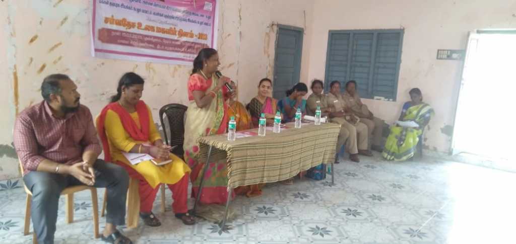 திருமிகு அமுதா ஒருங்கிணைந்த சேவை மையம் ஆலோசகர் அவர்கள் பேசுவதில் ஒருங்கிணைந்த மையம் செயல்பாடுகள் குறித்து விளக்கி அனைவருக்கும் மகளிர் தின வாழ்த்துக்களை தெரிவித்தார்