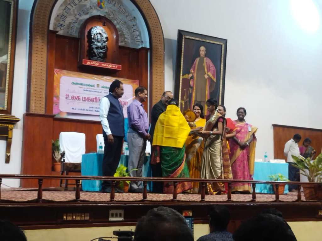 அண்ணாமலை பல்கலைக்கழக சாஸ்திரி அரங்கில் உலக மகளிர் தின விழா நடைபெற்றது. இந்த நிகழ்வில் அண்ணாமலை பல்கலைக்கழக துணைவேந்தர் முது முனைவர் இராம. கதிரேசன் ,அண்ணாமலை பல்கலைக்கழக திவாளர் முனைவர் கீ.சீத்தாராமன் ஆகியோர் பங்ககேற்றனர் . உலக மகளிர் தின விழா மேடையில் இந்த விருது திருமிகு பாரதி பாஸ்கர் அவர்களால், அண்ணாமலை பல்கலைக்கழக பேராசிரியர்கள் முன்னிலையில் இந்த விருது வழங்கப்பட்டது.
