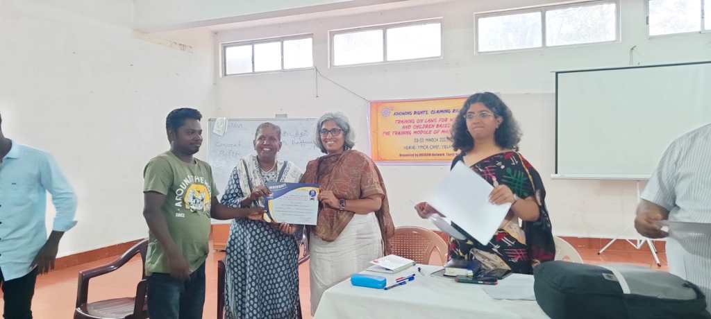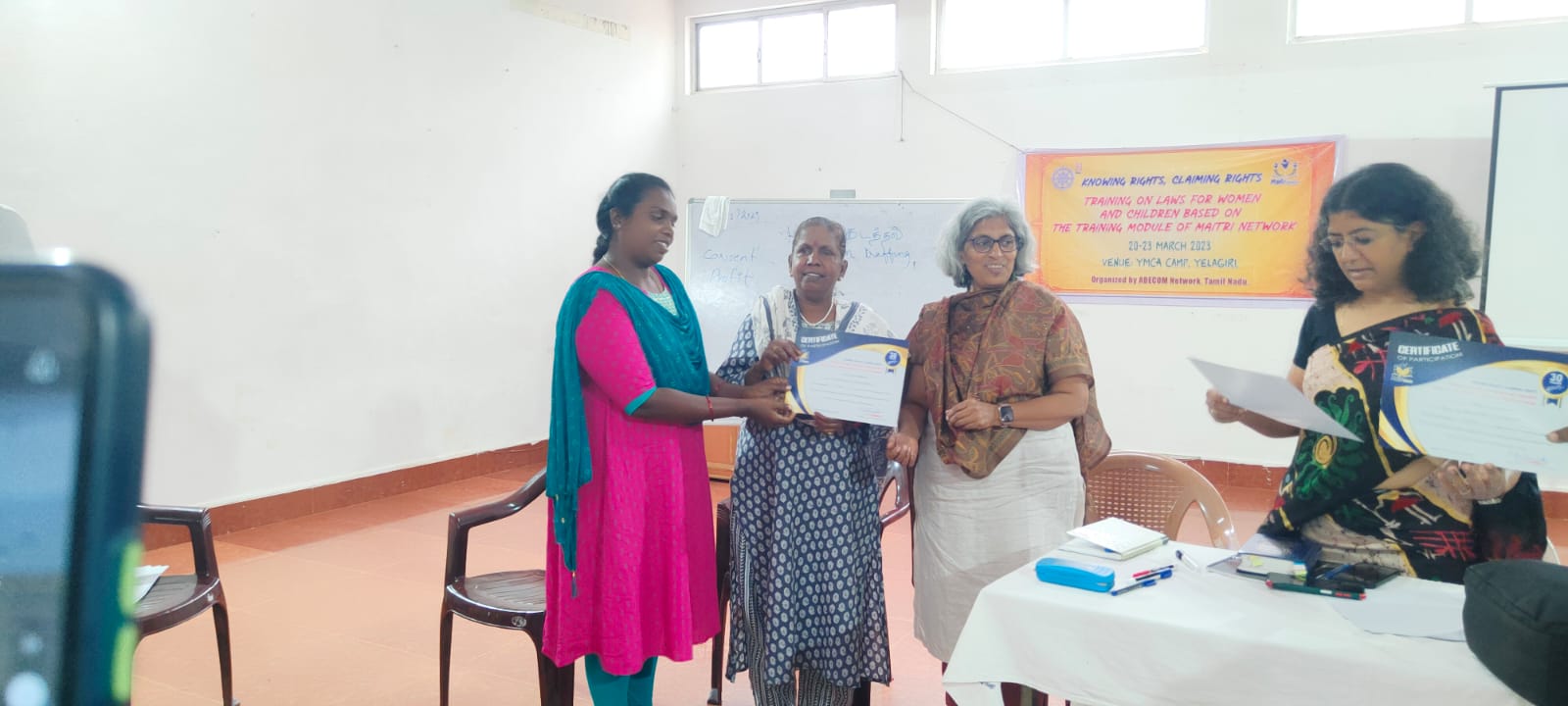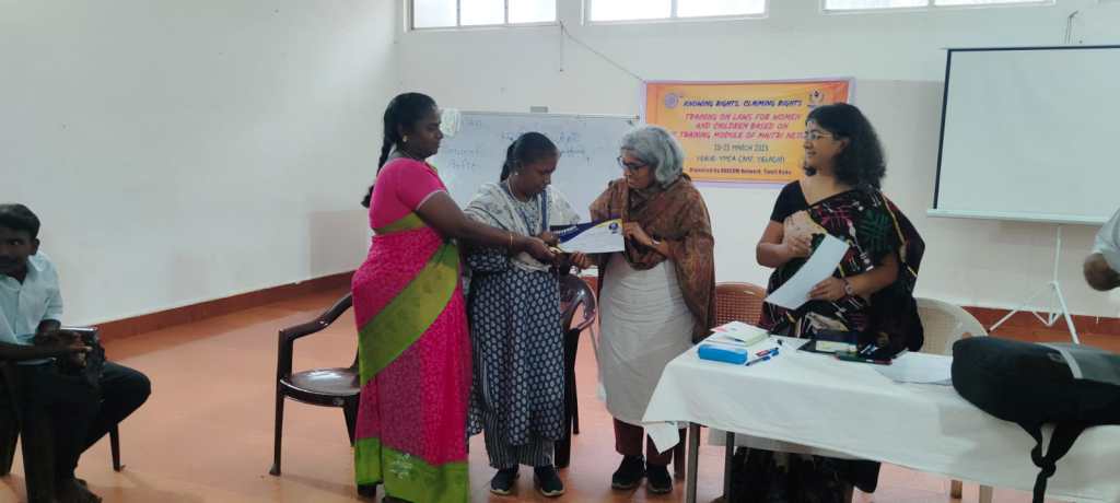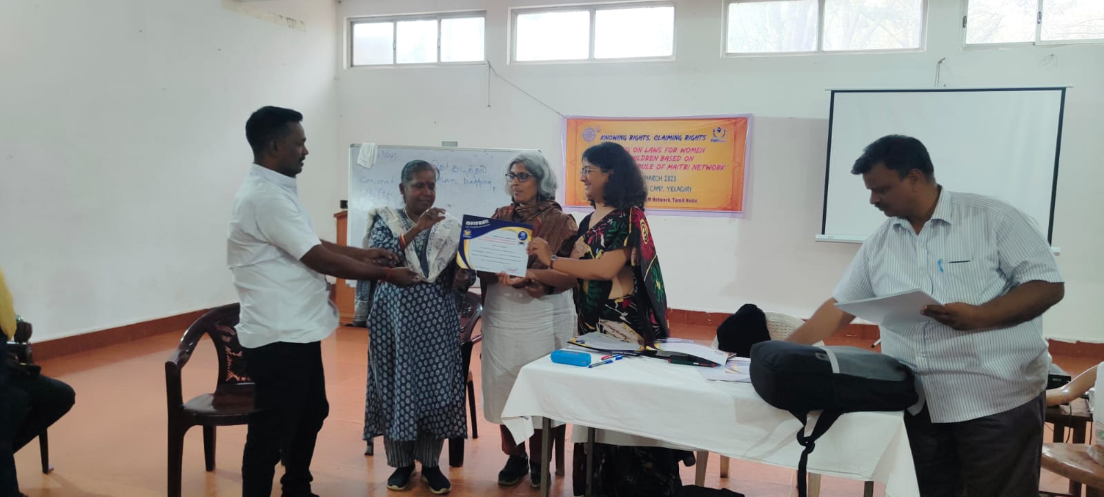 On 24.03.23 ADECOM Network & Maitri Network organized four days training on laws of women & Children , in Yellagiri at YMCA . In the day four, Laws of cyber & violence against women are discussed. And also certification distributed all the participants.
