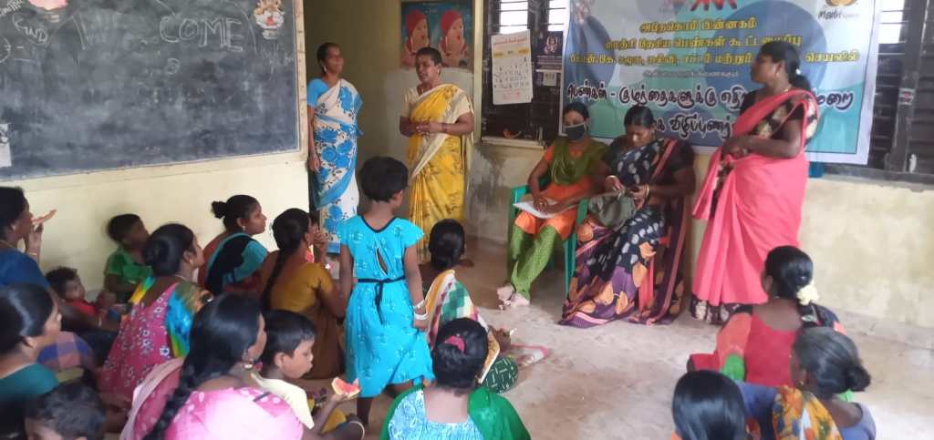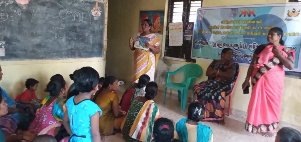 அதே கோம் பின்னகம்,கூட்டுக்குரல் நாடக இயக்கம் மற்றும் அங்கன்வாடி சமூக குழுக்கள் ஒருங்கிணைந்த பெண்களுக்கு எதிரான வன்முறை குறித்த விழிப்புணர்வு நிகழ்ச்சி கரிக்கலாம் பாக்கம் அங்கன்வாடி மையத்தில் 20 4 2023 காலை 10:30 மணி அளவில் நிகழ்ச்சி நடைபெற்றது. நிகழ்ச்சியில் திருமிகு கௌசல்யா முன்னாள் அங்கன்வாடி உதவியாளர் வரவேற்புரையாற்றினார்.