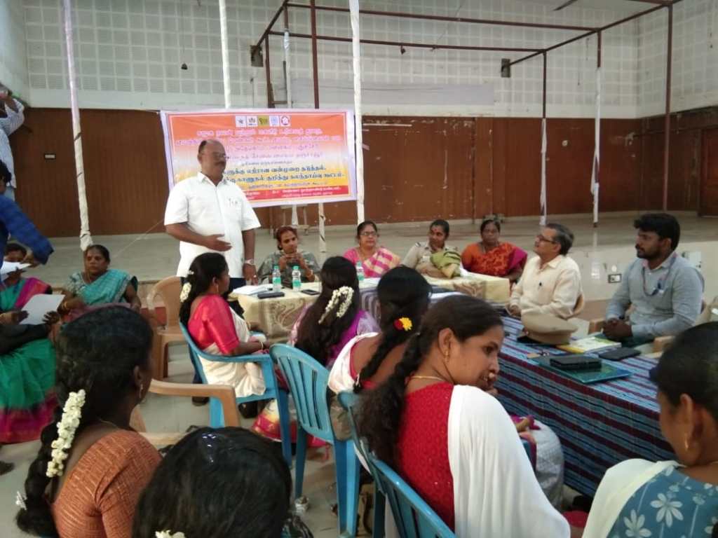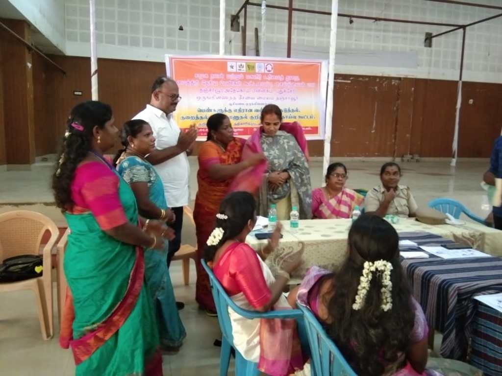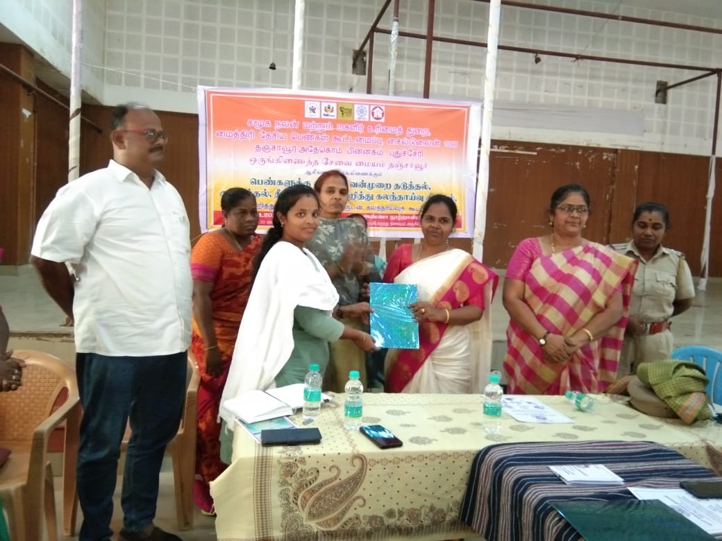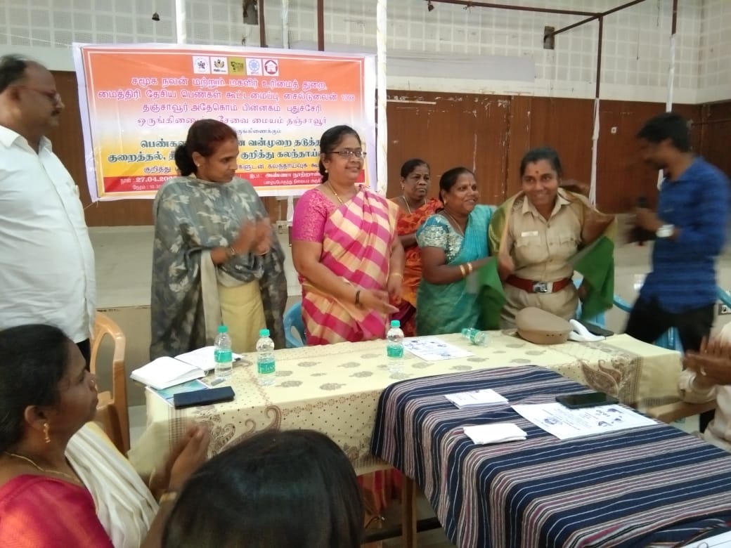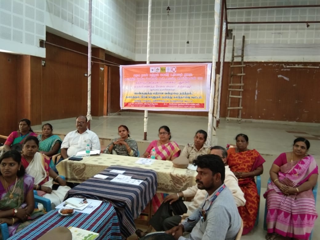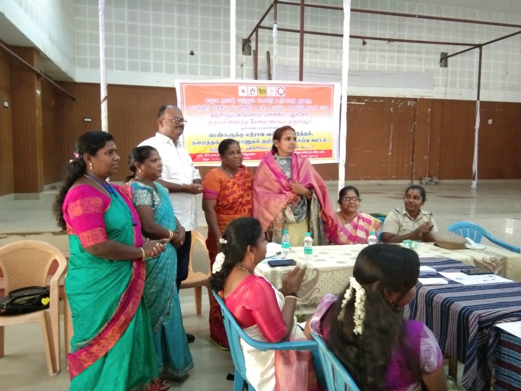 District Social Welfare Officer Tmt. Anuraboo Natarajamani, District Child Development Program Officer Tmt. Rajeshwari, Thiru. P. Fathima Raj Managing Director SHIED India Childline 1098, Thanjavur All Women Police Station Inspector Tmt. Ravimathi, Member of the Child Welfare Committee Tmt.Lalitha and Thiru. Dhananjezhiyan OSC Admin Tmt. Vimala and more than 50 participated in this consultation and gave suggestions to reduce violence against women.