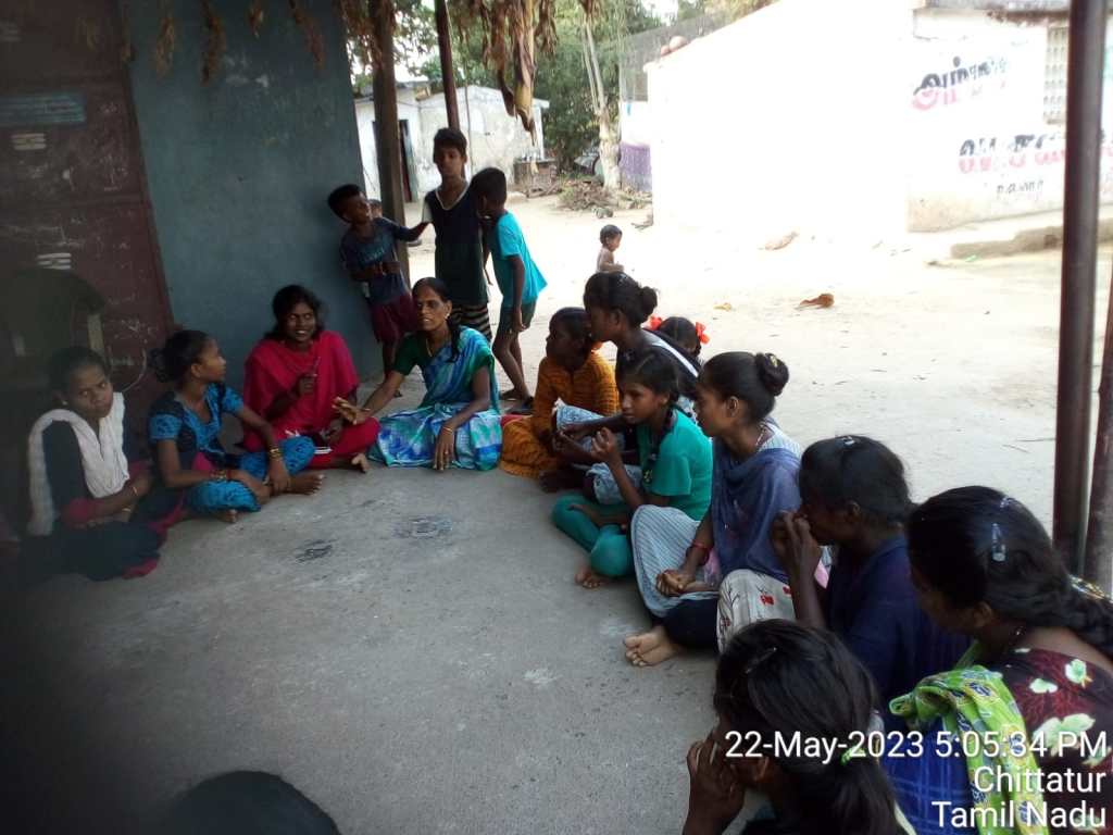 On 22.05.23, European Union, Karuna Trust Germany, ADECOM Network and Villupuram Resource center organized Balavika Panchyat Meeting in Thalavanur, Villupuram District. In the meeting 20 persons were participated and 2 teachers were also participated.