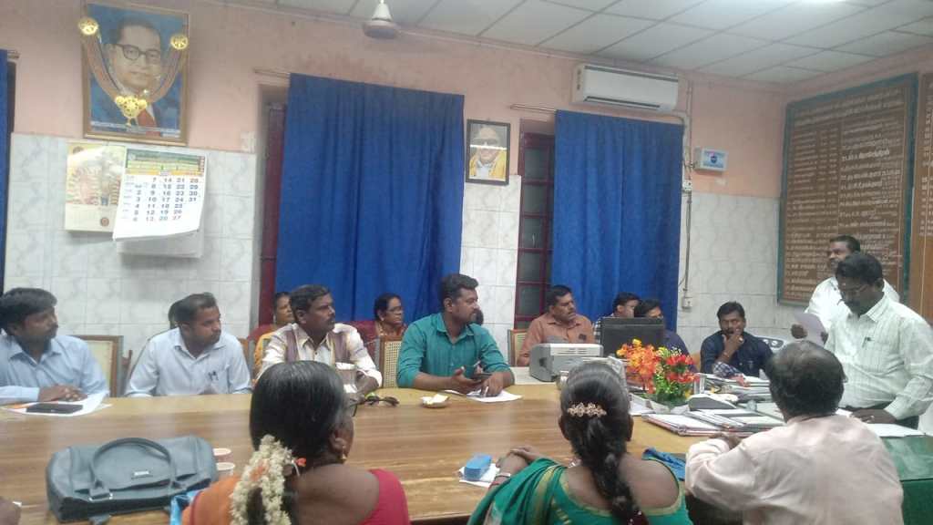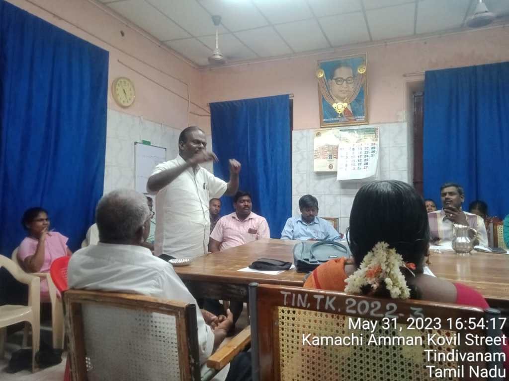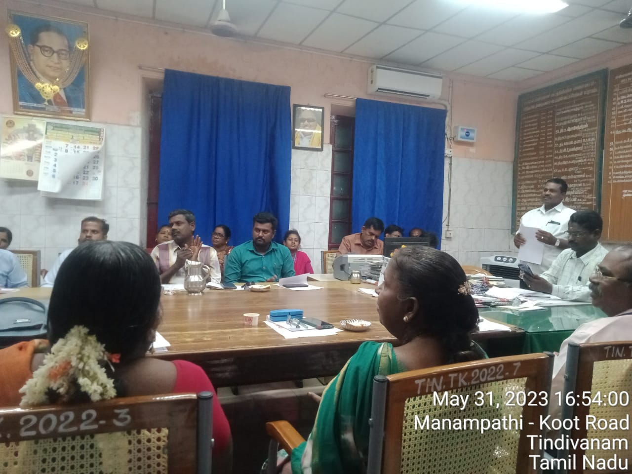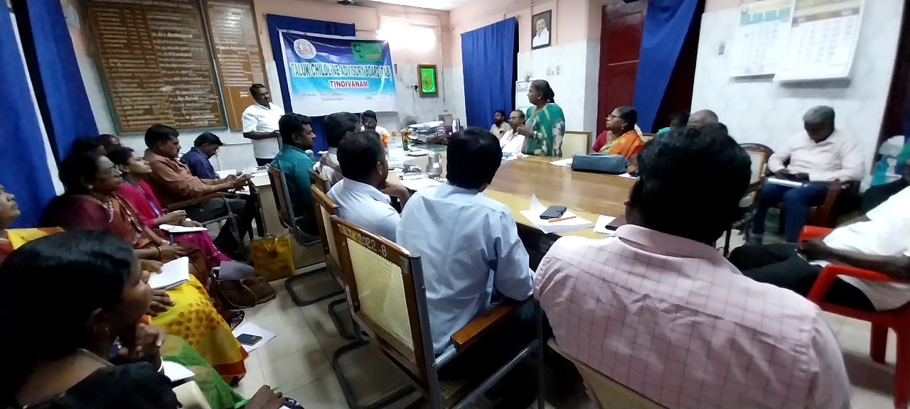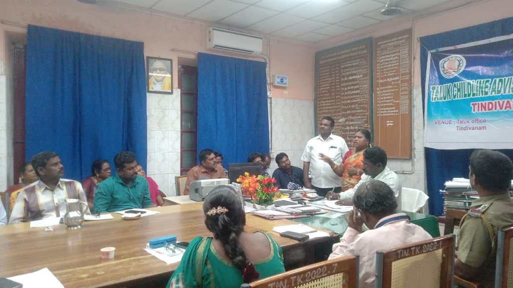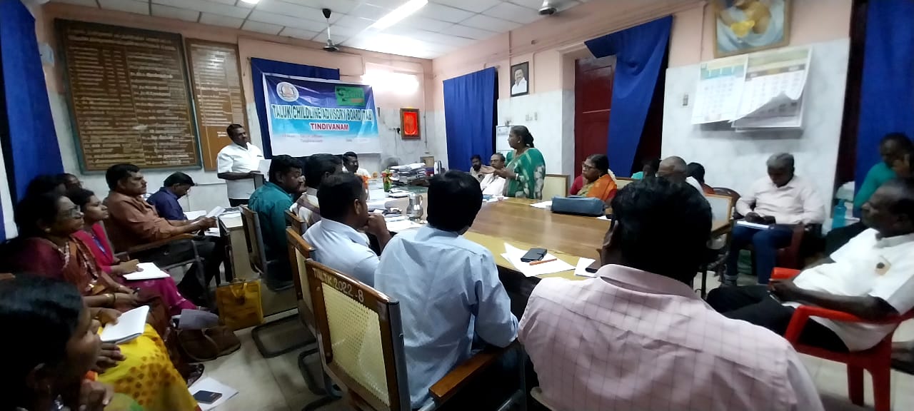 ADECOM Villupuram Women Resource Center and Tindivanam Taluk child Line are jointly organized a stakeholders meeting in Tindivanam Taluk office. In this meeting Tindivanam women Dignity centre Facilitator Mr.Lakshimipathi gave a welcome speech. He welcomed all stakeholders and than mentioned the child marriage status is low in this taluk . And also mentioned the upcoming awareness program will conduct on June-12th . This program will do the signature campaign and Rally to sexual Voilence against children and against child labour . Mr.Felix BEO Olakkur Block discussed the education system of Tindivanam Taluk and Achievement of the Olakkur Block regards education in schools. Mr.Muthukannan ST people leader was discussed about the ST people are troubling to get community certificate by applying through online so they need and comfortable with off line mode of application to apply and get the community certificate for them. And discussed about 18 Families with 30children from brick Chambers at Thindukkal with the help of Thasildhar,child line,DCPO ,RI. Also mentioned here to cultivate trees in schools, Panchayat common place.