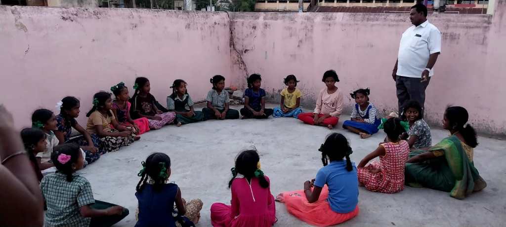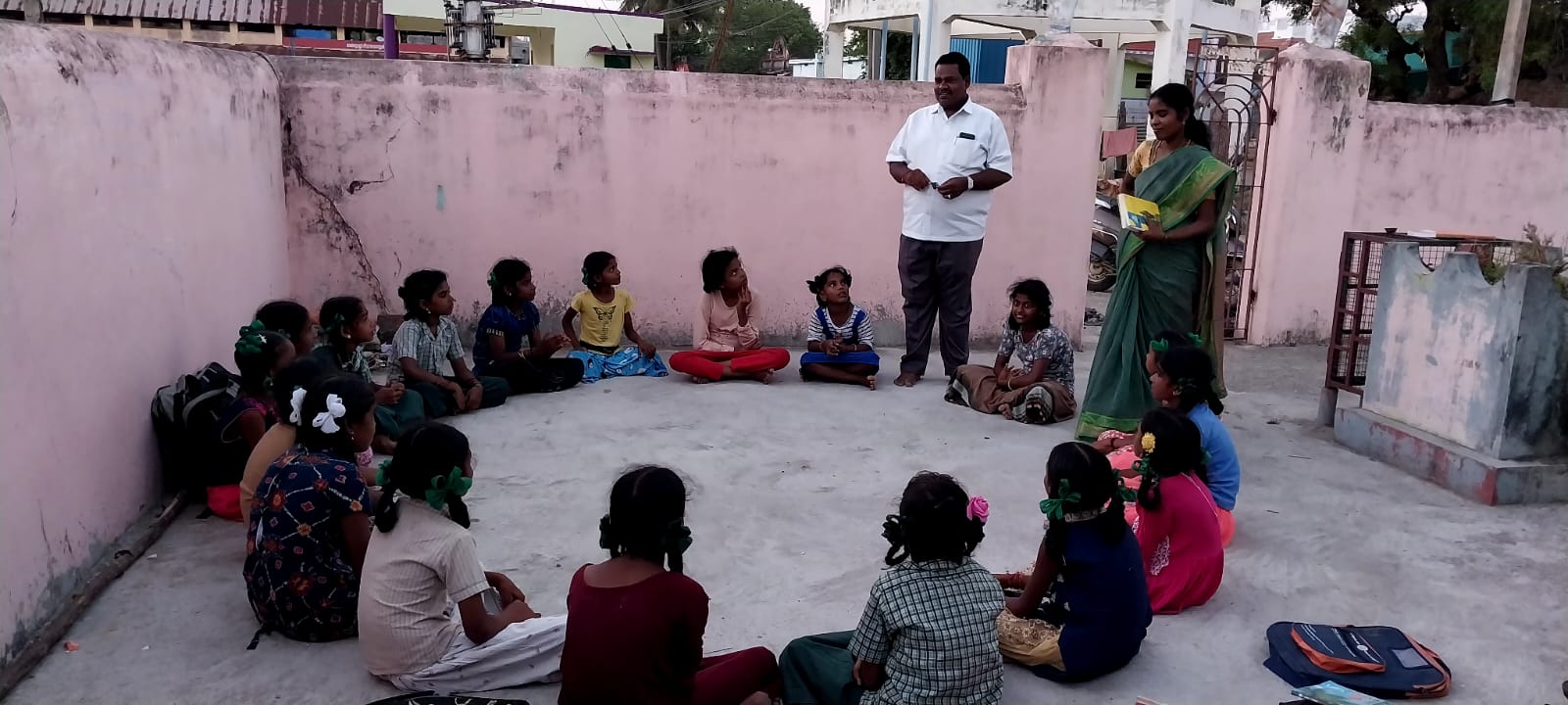 June 26, European Union, Germany Karuna Trust , ADECOM Network & Tindivanam Women Dignity Center organized balaviag panchyat meeting for the children in Endiyur, Tindivanam. In the meeting Volunteer, Ms.Kowsalya , Mr. Lakshmipati and Ms.Kuppamal were participated. In the meeting, they gave introduction about the balaviga meeting. 17 children were participated.