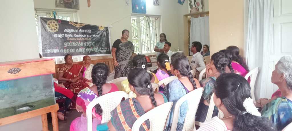 பாதுகாப்பு அதிகாரி திருமிகு . சித்ரா பிரியதர்ஷினி, கூறுகையில் குடும்ப வன்முறையில் ஒரு பெண் பாதிக்கப்பட்டால் முதலில் பாதுகாப்பு அதிகாரி மற்றும் சேவை வழங்குனர்களை அணுக வேண்டும். மேலும் எந்த குற்றம் என பிரிக்கப்படும் குடும்ப வன்முறை என்றால் மனரீதியாக, உடல் ரீதியாக, பொருளாதார , பாலியல் ரீதியாக இருக்கும் பட்சத்தில் நீங்கள் நீதிமன்றங்களை அணுகலாம். பாதிக்கப்பட்டவர்களுக்கு குடியிருப்பு உரிமை ,இழப்பீடு, கண்காணிப்பு, பாதுகாப்பு உத்தரவு ,பெற்று தரப்படும். குறிப்பாக கணவர் மனைவி இடமிருந்து குழந்தையை பறித்து எடுத்துச் செல்லும் பட்சத்தில் அதனை மீண்டும் மனைவியிடம் ஒப்படைக்க இலவச சட்ட அதிகாரிகள் இருக்கிறார்கள் நாங்களும் ஆலோசனை வழங்குகிறோம். நீதிமன்றம் எடுத்துச் செல்கிறோம். என கூறினார்கள்.