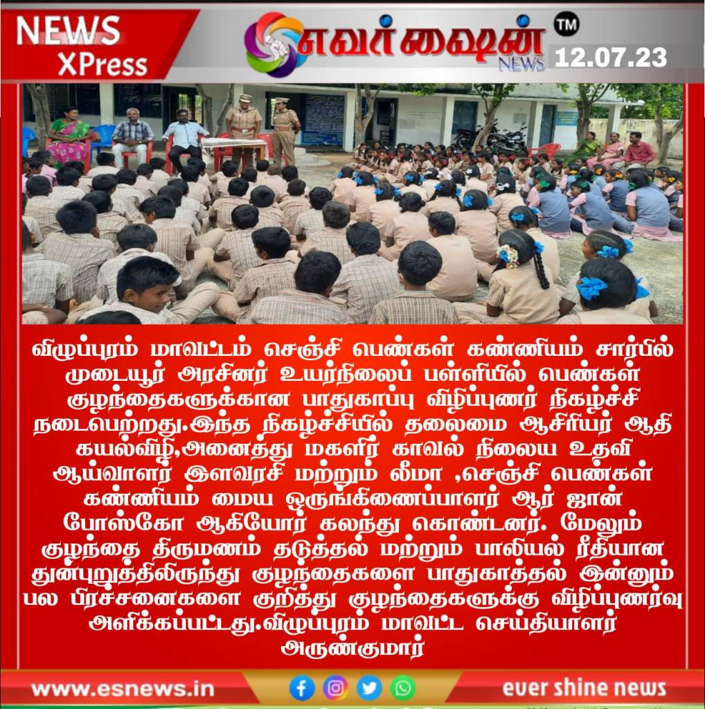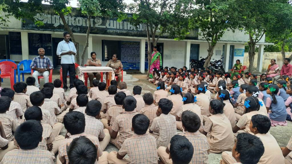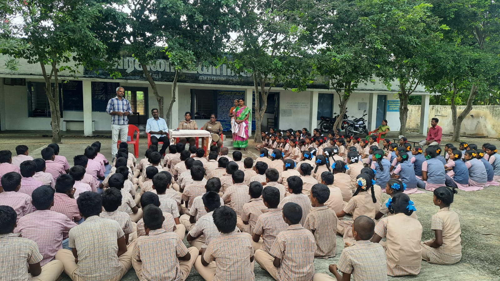 On 12.07.23, ADECOM Dignity center Gingee organized awareness meeting for children in Udyur Higher secondary Govt School , Gingee. In the meeting AWPS SI Mrs.Ilavarsi & Mrs.Lima were given speech about the children safety in the school against violence. School headmaster, Teachers, Dignity center facilitaor & case worker were participated. They given awareness children safety , Child marriage and child Labour. In the meeting 263 children were benefited.