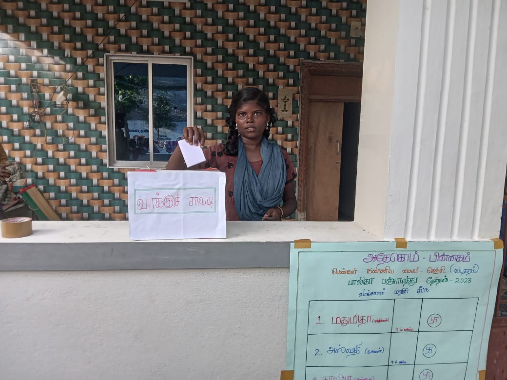 தேர்தல் 15 8 2023 சுதந்திர தினத்தன்று செஞ்சி வட்டம் வடதரம் கிராமத்தில் ADECOM பெண்கள் கண்ணியம் மையம் செஞ்சி வழிகாட்டுதலின் பேரில் பாலிக்கா பஞ்சாயத்து பொறுப்பிற்கான தேர்தல் நடைபெற்றது.