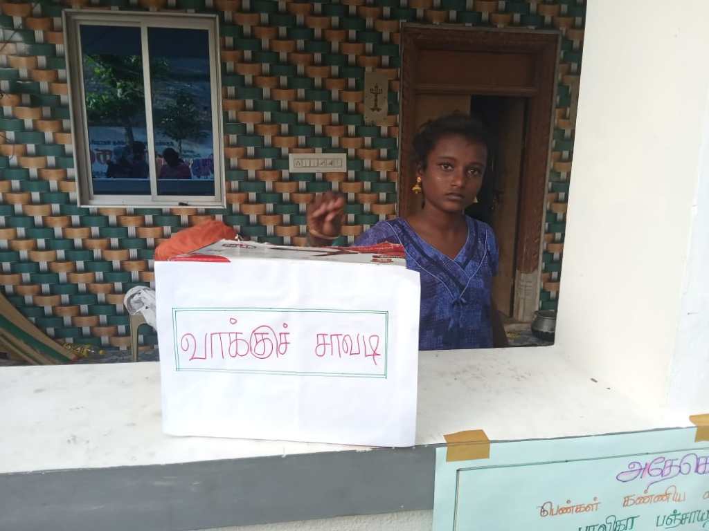 பின்னர் வாக்கு சீட்டு பெட்டியை சீல் வைக்கப்பட்டு ஊராட்சி மன்ற தலைவரிடம் ஒப்படைக்கப்பட்டது