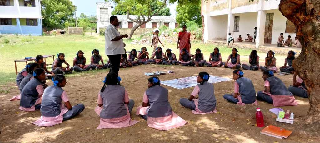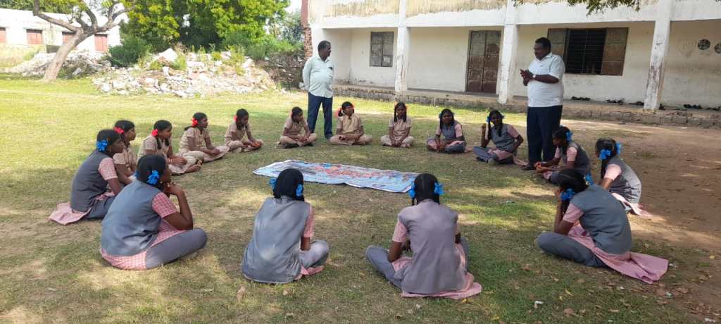 குழந்தை திருமணத்தால் பாதிக்கப்படும் கல்வி ஆகியவை குறித்து விழிப்புணர்வு கொடுக்கப்பட்டது.