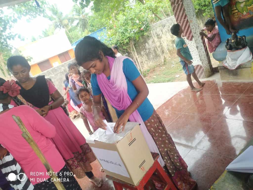 வெற்றிச்செல்வி என்ற மாணவி நான் ஆறாம் வகுப்பு படிக்கிறேன் முதல் முறையாக ஓட்டு போடுகிறேன் நான் சந்தோஷமாக இருக்கிறேன் என்று எங்களிடம் கூறினார்