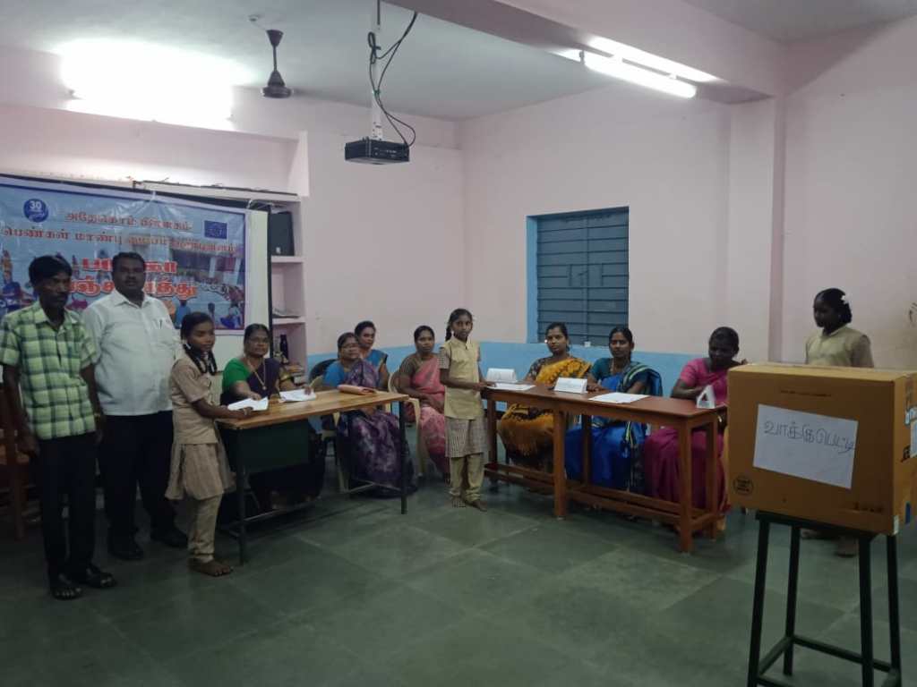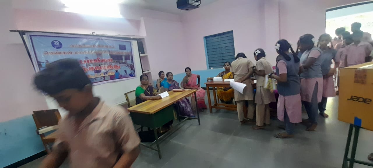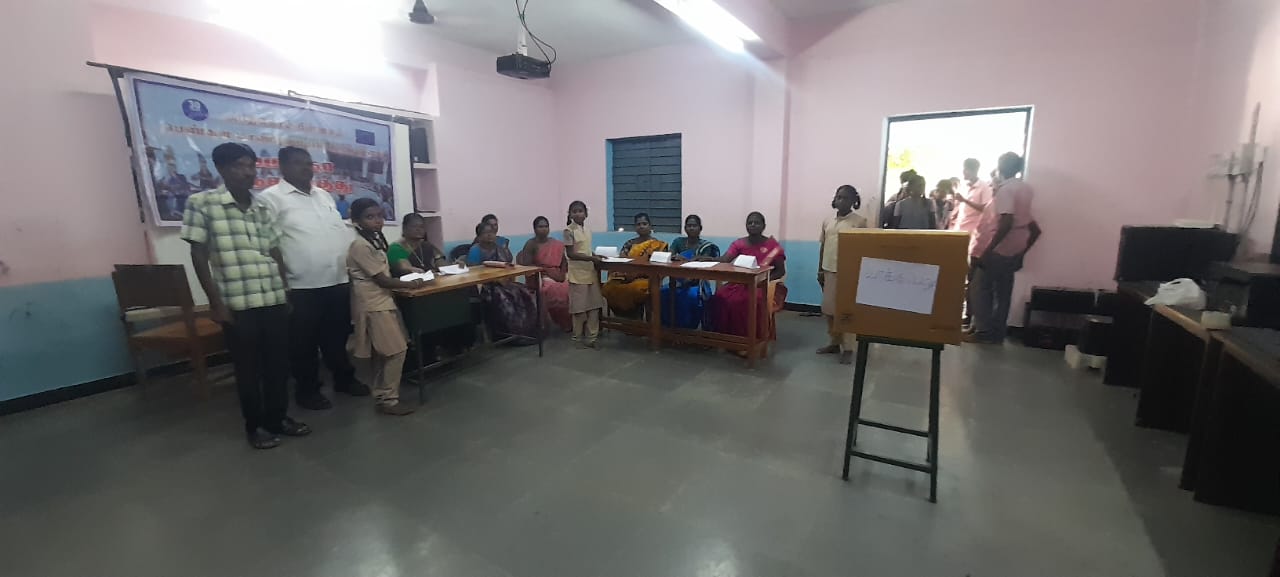 On 7.9.2023, Kollaar, Tinidivanam District our dignity center staffs organized Baliga Panchayat election held. In the meeting Ms. Bhavani, School Head mistress act as election officer, Mr. Prabhakaran, Volunteer and our staff were participated. In the election 6 female children contested in election. The total persons casting voting are 57. Every children enjoyed the elections.