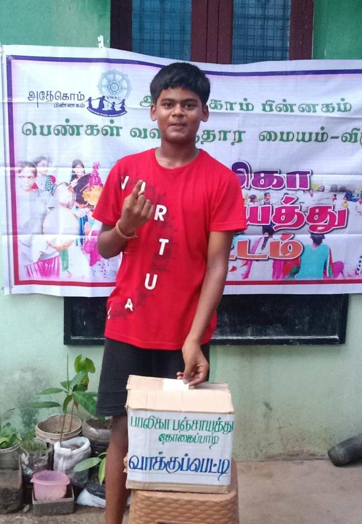 இத்தேர்தலில் ஐந்து வேட்பாளர்கள் தலைவர், செயலாளர், துணை தலைவர், ஆகிய பொறுப்புகளுக்கு போட்டியிட்டனர் இத்தேர்தலில் 43 வாக்காளர்கள் வாக்கு செலுத்தினார்கள். தேர்தல் அலுவலராக திருமதி அர்ச்சனா தன்னார்வலர் அவர்கள் செயல்பட்டார்கள் இறுதியாக மாணவ மாணவிகள் தேர்தல் குறித்து தங்களின் அனுபவ பகிர்வை பகிர்ந்து கொண்டார்கள்.