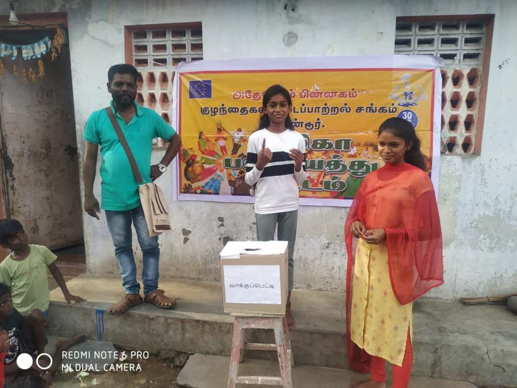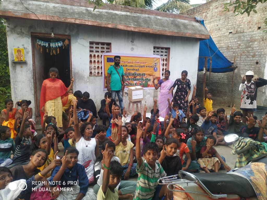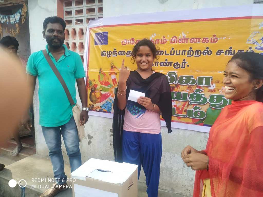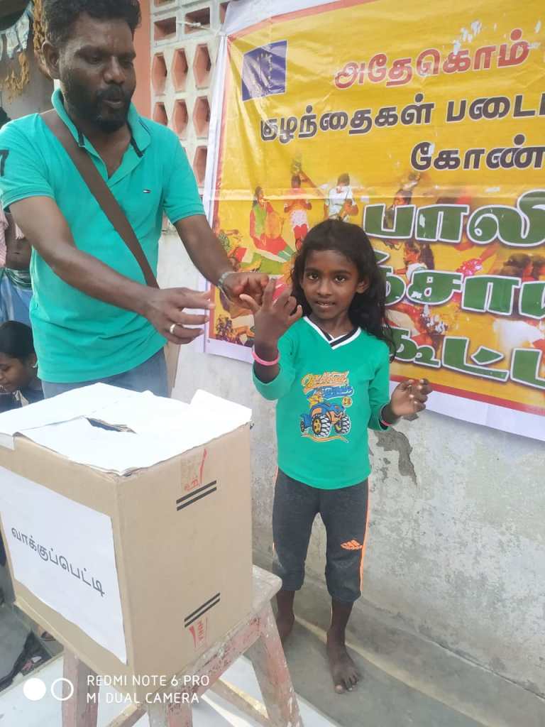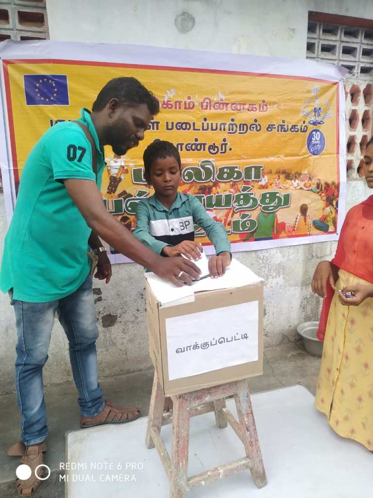 முதலில் அனைத்து மாணவர்களும் ஒன்று சேர்த்து ஓர் இடமாக அமர வைத்து பின்னர் 55மாணவர்களின் முன்னிலையில் எங்களை அறிமுகப்படுத்திக் கொண்டு சி ஆர் சி பற்றி அறிமுகப்படுத்திக் கொண்டோம் பின்னர் அனைத்து மாணவர்களிடமும் பாலிகா பஞ்சாயத்தை பற்றி புரிதலை ஏற்படுத்தினோம் பின்னர் அனைவரையும் கைதட்டும்படி கூறினோம்.வேட்பாளர்களை அறிமுகப்படுத்தி வைத்தோம்