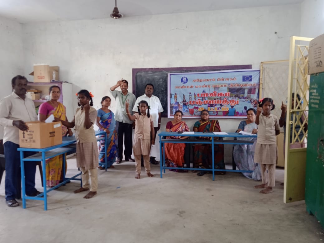 On 13.09.23, Tindivanam Dignity center organized Balika Panchayat Election in Singanur. In the election process Teachers, Ms.Hemalath, Ms.Bharti and our staff were participated. 6 children contested election. 78 person cost their votes. Children enthusiastically participated in the election process.