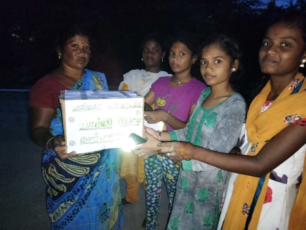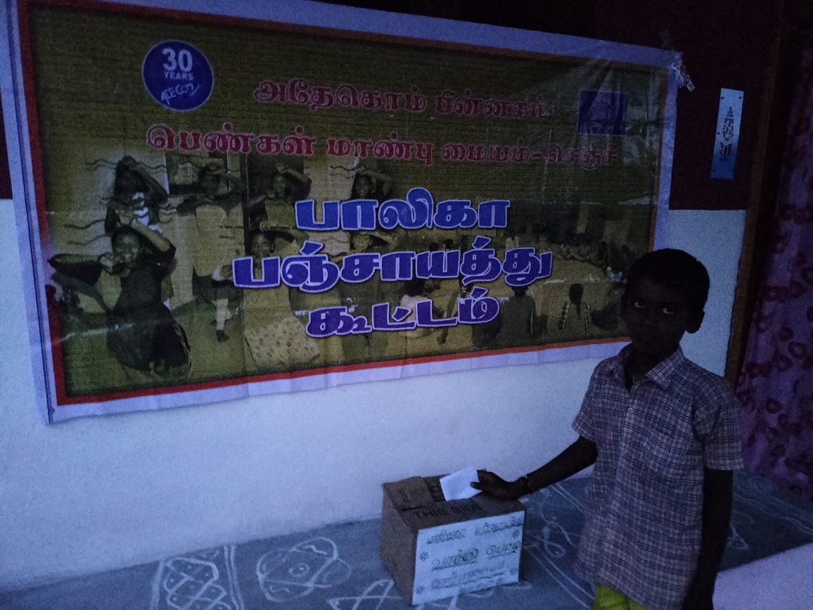 வாக்குப்பதிவு முடிந்த பின்பு வாக்கு பெட்டியை திருமதி உமா குமார் வார்டு உறுப்பினரிடம் ஒப்படைக்கப்பட்டது .