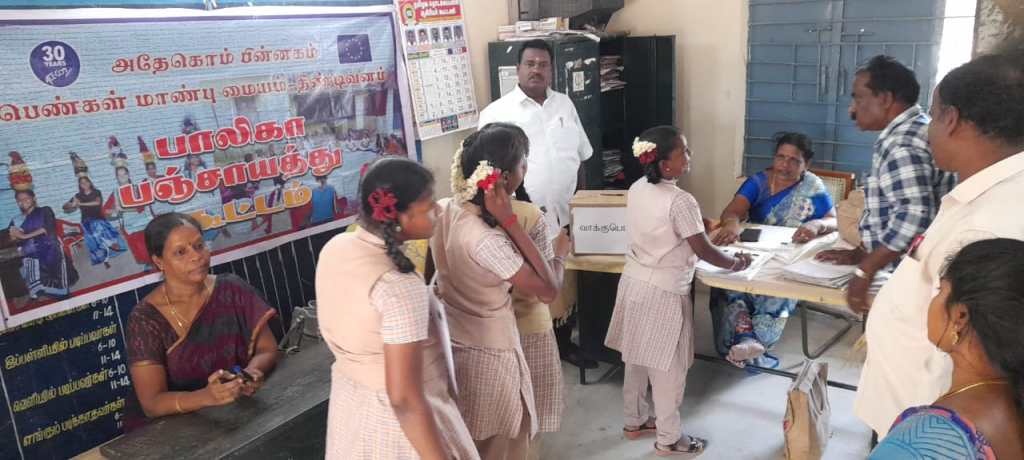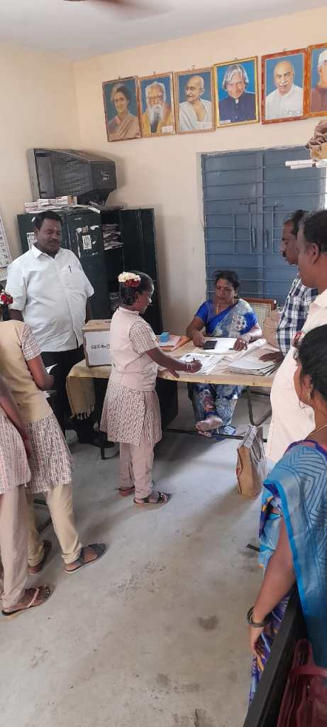 இன்று பெரமண்டூர் பகுதியில் பாலிகா பஞ்சாயத்து தேர்தல் நடைபெற்றது. இதில் ஆறு பெண் குழந்தைகள் தேர்தலில் போட்டியிட்டனர். அனைத்து குழந்தைகளும் ஆர்வமாக ஓட்டு அளித்தனர். தலைவர் இரண்டு பேர் செயலாளர் இரண்டு பேர் பொருளாளர் இரண்டு பேர் என மொத்தம் ஆறு பேர் போட்டியிட்டனர். 50 குழந்தைகள் வாக்களித்தனர். இதில் ஆண்கள் 18 பெண்கள் 32 பேர் என வாக்களித்தனர். தேர்தல் முடிவுகள் 25/09/2023 அன்று ஊராட்சி மன்ற தலைவர் முன்னிலையில் அறிவிக்கப்படும் என கூறப்பட்டது.