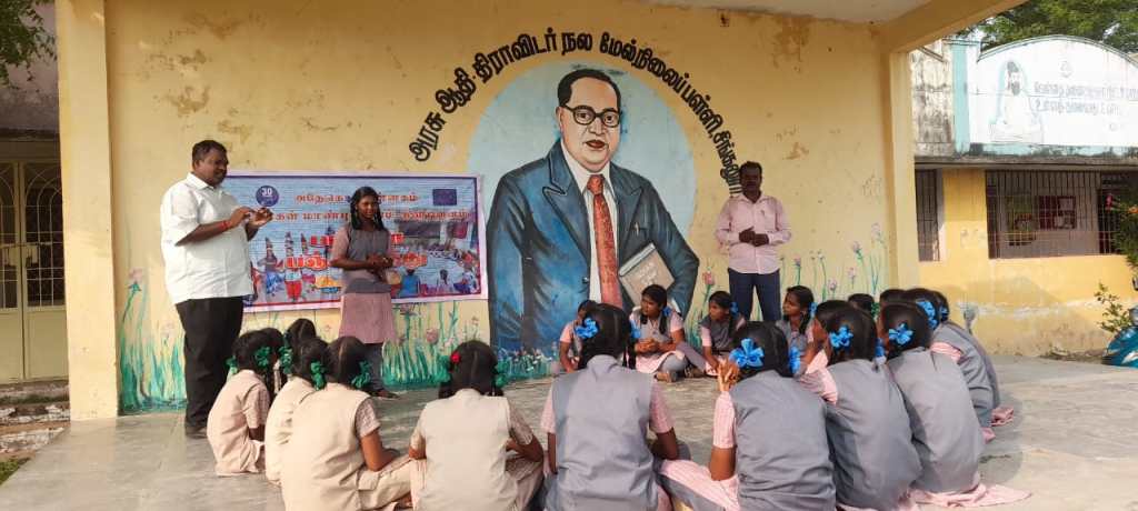குழந்தை திருமணத்தால் பாதிக்கப்படும் கல்வி ஆகியவை குறித்து விழிப்புணர்வு கொடுக்கப்பட்டது.