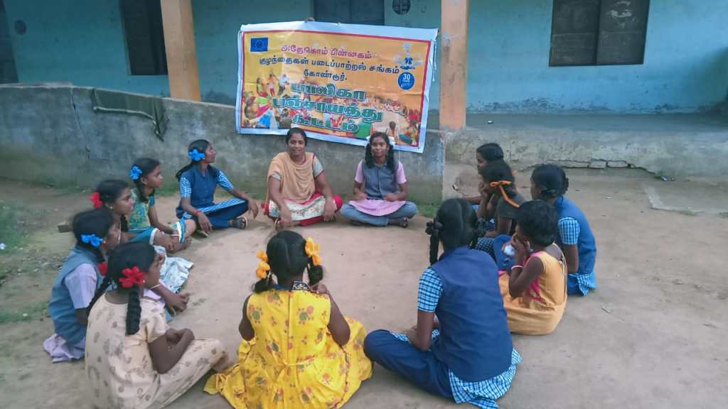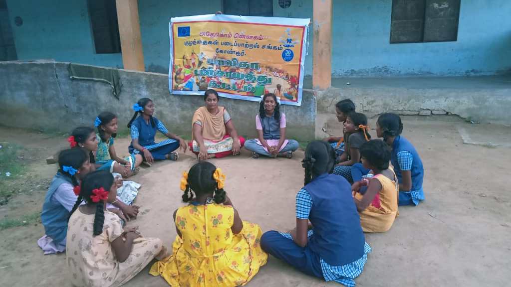 ADECOM Women Dignity Centre Kandamangalam conducted a monthly Balika Panchayat Election Result Notification was held on 02.11.2023. The Balika Panchayat elections were held last month in Palliputhupattu village. In the election, Prithika – President , Jennifer-vice president, and secretary Sana selected everyone happy when the results came out. All the members conveyed their greetings to the leaders. All the members clapped then small group games were played with them .In the meeting 12 memberd, field coordinator :Mrs.Jayaprabha and Mrs.Ponniamal and Special Invitee:PLV Ms.Akila also participated.