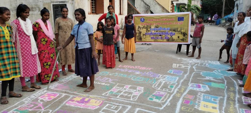 இன்று வட தாரம் பாலிகா பஞ்சாயத்து உறுப்பினர்கள் பங்கேற்று நடத்திய கிராம அளவிலான வல ஆதார வரைபட விளக்க நிகழ்ச்சி நடைபெற்றது. இந்நிகழ்ச்சியில் அந்த கிராமத்தினுடைய அமைப்பை பாலிகா பஞ்சாயத்து உறுப்பினர்கள் ஒன்று சேர்ந்து வரைபடமாக வரைந்து பெண்கள் மற்றும் குழந்தைகளுக்கு பாதுகாப்பான இடம் எவை என்பதையும் பாதுகாப்பற்ற இடம் எவை என்பதையும் குழந்தைகள் மற்றும் பொதுமக்களுக்கும் புரிகின்ற வகையில் பாலிகா பஞ்சாயத்து உறுப்பினர்கள் வட்டமிட்டு காட்டி அவர்களுக்கு புரிய வைத்தனர்.