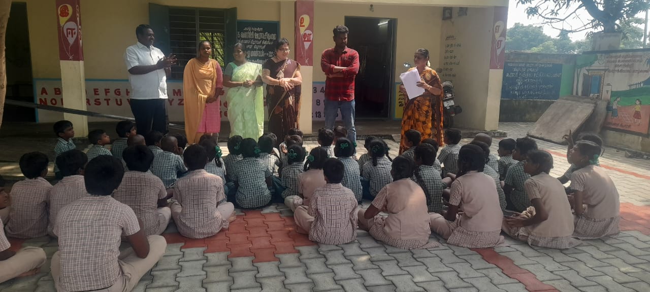 பேசப்பட்ட கருத்துக்கள்: நம் அதே கோம் பெண்கள் கண்ணிய மையத்தின் செயல்பாடுகள் குறித்து அவர்களுக்கு அறிமுகம் செய்யப்பட்டது.நம் திட்டத்தின் உடைய செயல்பாடுகள் நோக்கம் குறித்தும் கலந்துரையாடப்பட்டது . போதை ஒழிப்பு மற்றும் மனித கடத்தல் பற்றியும் குழந்தைகளிடம் இளம் வயது திருமணத்தை தடுப்போம் என்ற உறுதி மொழியும் எடுத்துக் கொள்ளப்பட்டது பாதுகாப்பான இடம் பாதுகாப்பற்ற இடம் பற்றியும் குழந்தைகளிடம் பேசப்பட்டது. பள்ளிக்கு போகும் போதும் வரும் போதும் பாதுகாப்புடன் செல்ல வேண்டும் எனவும் அறிவுறுத்தப்பட்டது. ஆதரவற்ற குழந்தைகள் அப்பா அம்மா இல்லாமல் இருக்கும் குழந்தைகள் இவர்களுக்கான அரசு மூலமாக கிடைக்கும் உதவித் தொகை சம்பந்தமாக எடுத்து கூறப்பட்டது. வருகின்ற தீபாவளி திருநாளை பாதுகாப்பாக கொண்டாடும் படி கேட்டுக்கொள்ளப்பட்டது. . இறுதியாக குழந்தைகளிடம் கருத்துக்கள் கேட்கப்பட்டது.